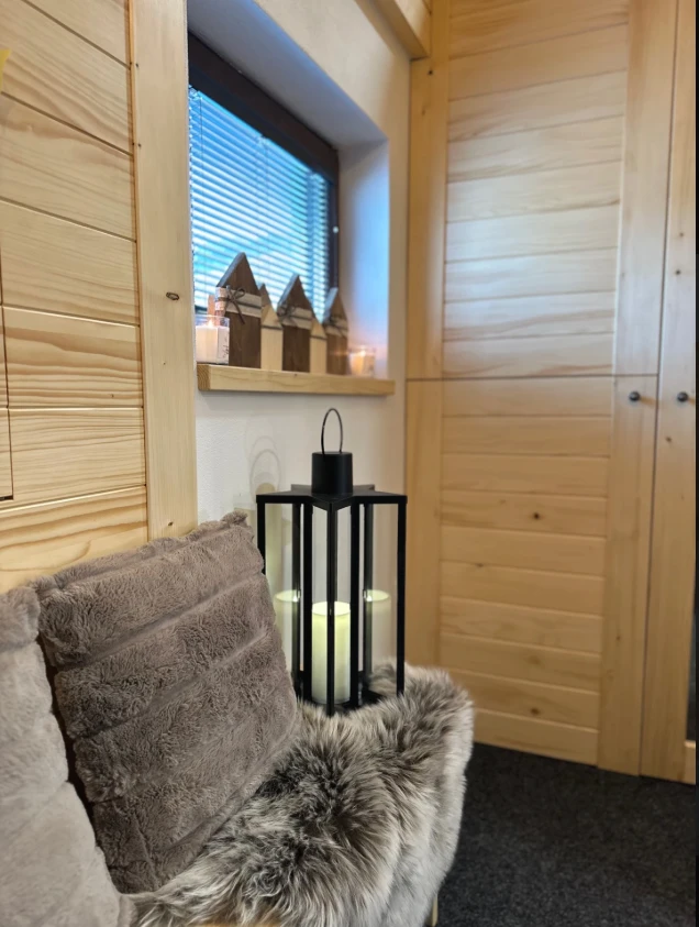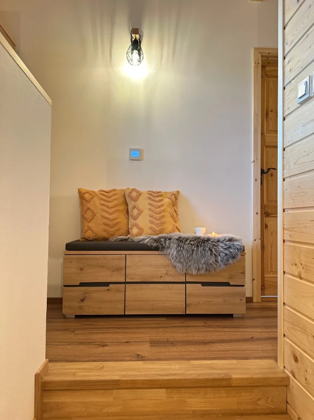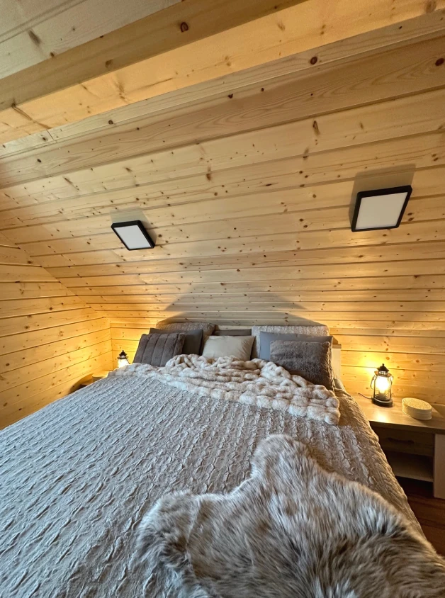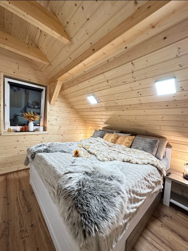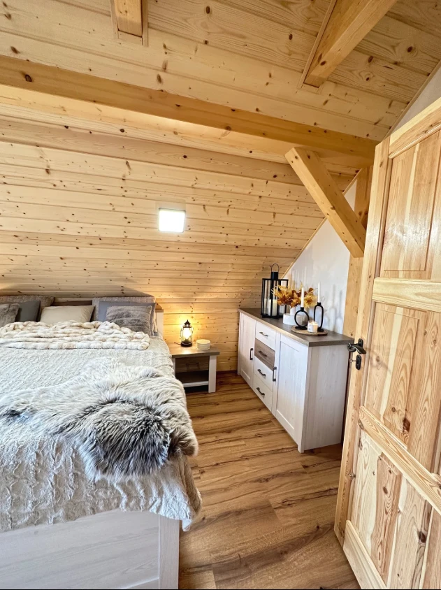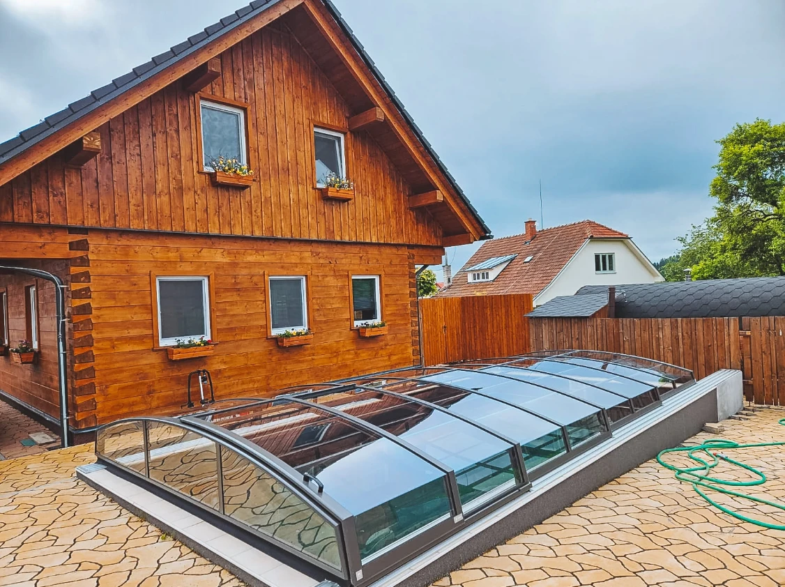 Celá roubenka je vybavena podlahovým vytápěním s možností dálkového ovládání, které zajišťuje pohodlí po celý rok.