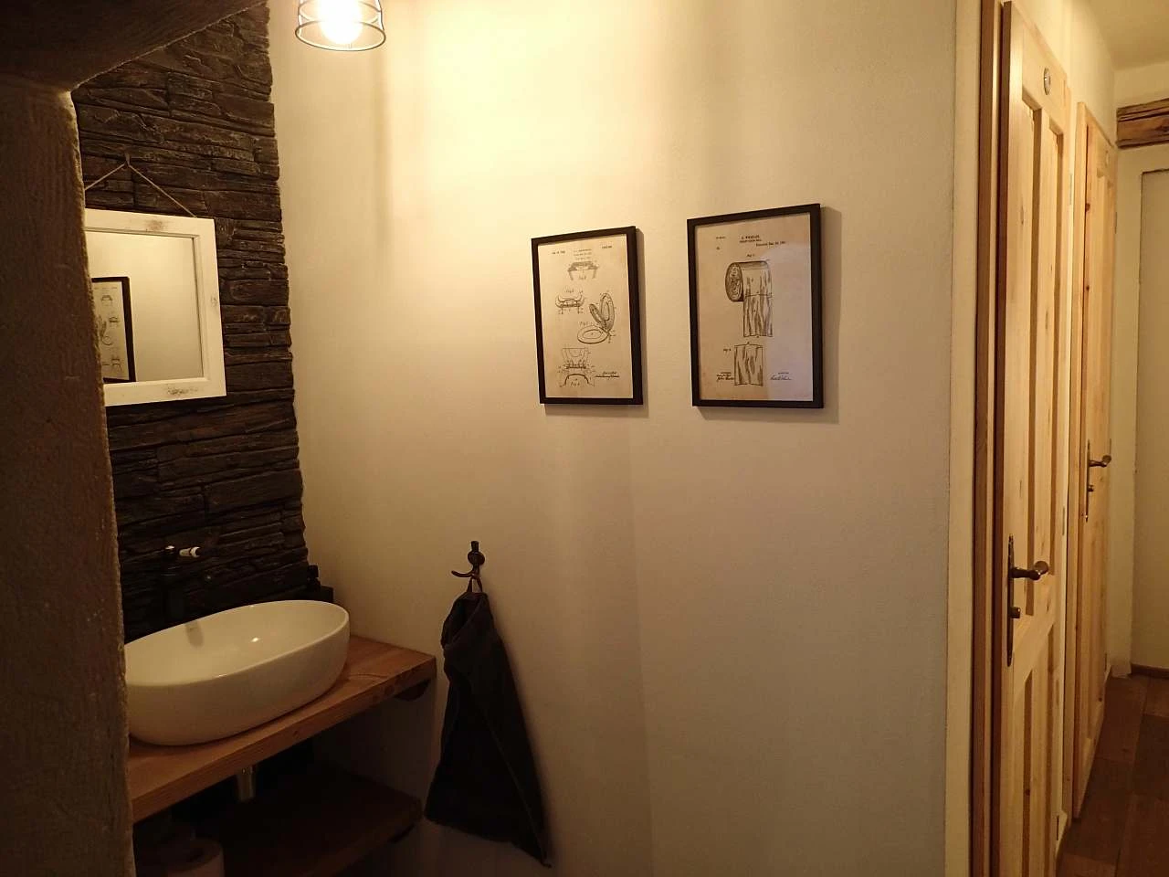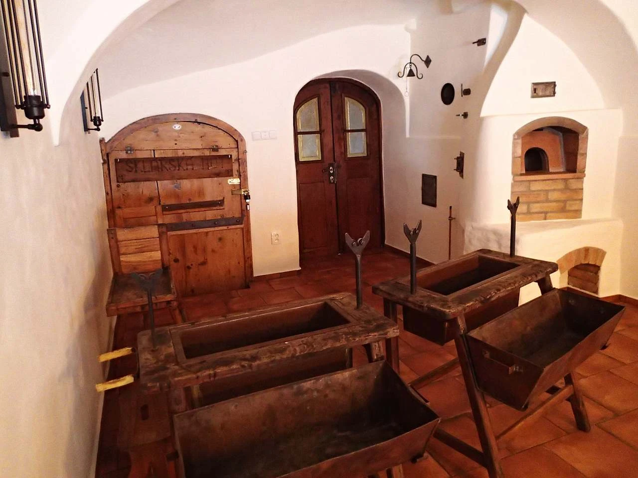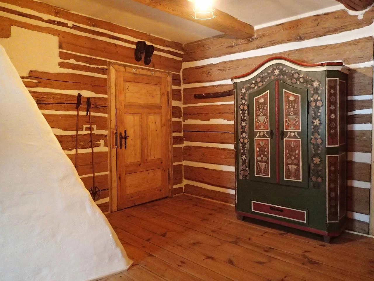 V přízemí se nachází chodba, lyžárna - kolárna s možností nabíjení elektrokol, velká společenská místnost s pecí a výčepem, jídelna, kuchyň, sklářská dílna, dvě toalety a kumbál - technická místnost. V prvním patře je velká chodba s rozkládací pohovkou a čtyři ložnice: 1x dvoulůžkový pokoj (dvoulůžko), 1x třílůžkový pokoj (dvoulůžko + jednolůžko), 1x čtyřlůžkový pokoj (4x jednolůžko) a 1x čtyřlůžkový dvoupokoj (1x dvoulůžko + 2x jednolůžko).