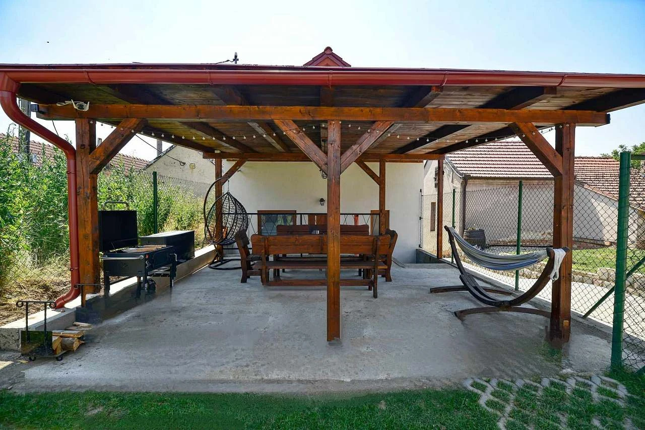 Využívat můžete zastřešenou terasu s posezením a grilem.