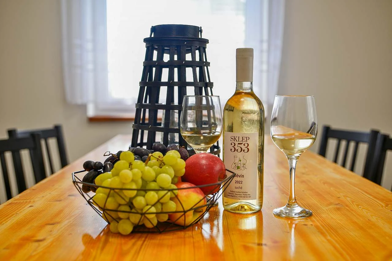 V rámci sklípku je rovněž možnost zakoupit místní moravská vína. Ta jsou skladována jak ve vinotéce, která se nachází v objektu, tak i ve vinném sklípku pod samotným ubytováním.