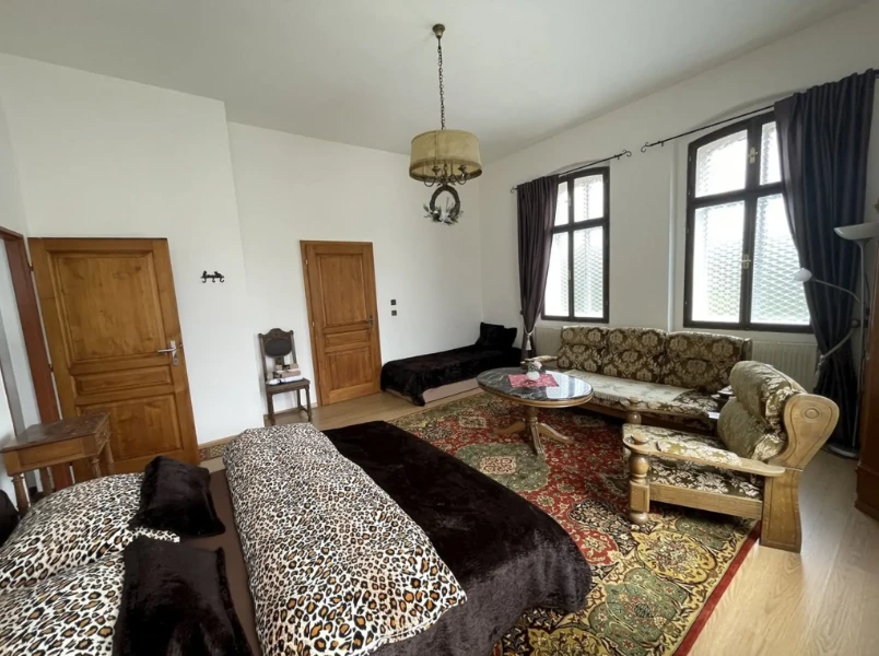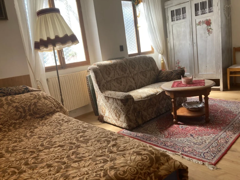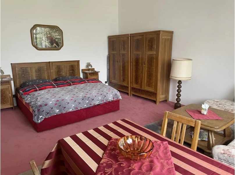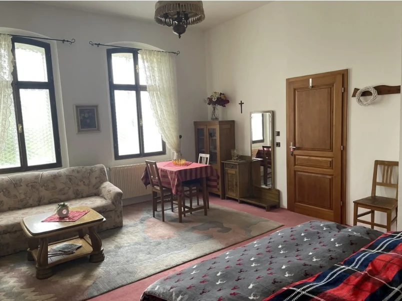 - Pokoj č. 1: kapacita 5 pevných lůžek + 4 přistýlky, 3 ložnice, 1 koupelna se sprchou a toaletou.