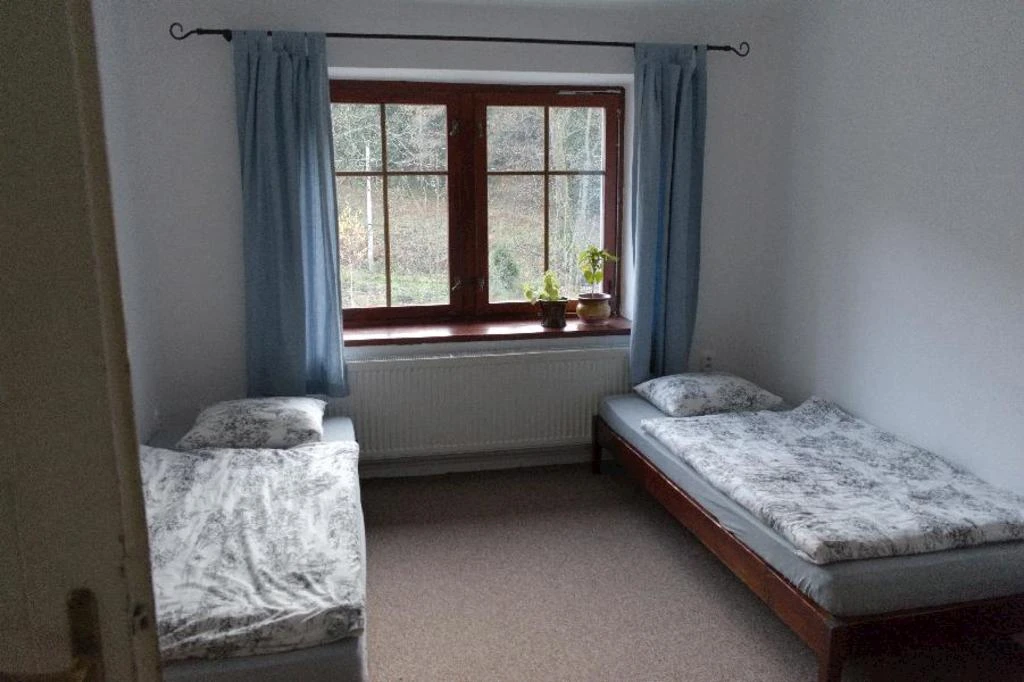 Ložnice 1: 1x Manželská postel 1x Jednolůžková postel Ložnice 2: 2x Jednolůžková postel – Možnost spojit do dvojlůžka Další lůžka mimo ložnice: 2x Přistýlka – gauč (obývací místnost) Vybavení: Internet WiFi Koupelna bez toalety Vana, Umyvadlo Samostatná toaleta Obývací místnost Krb / Kamna, Televize, Satelit, Gauč, Jídelní sezení Kuchyňský kout Elektrická trouba, Keramická varná deska, Mikrovlnná trouba, Rychlovarná konvice, Lednička, Mraznička, Myčka nádobí