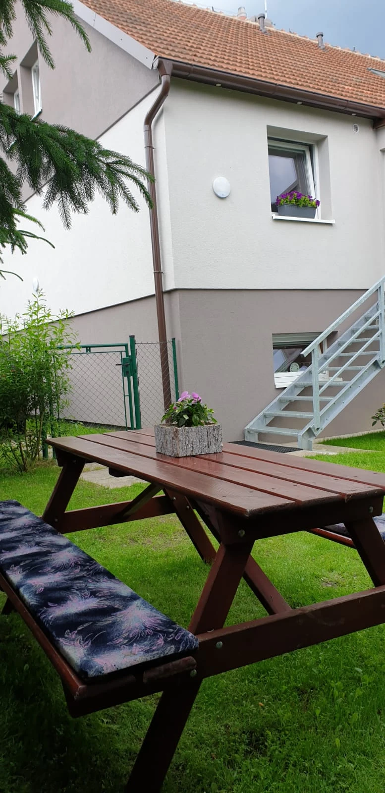 Dispozice: Apartmán s kapacitou až 4 osoby (2 pevná lůžka + 2 přistýlky). Počet ložnic: 1. Pokoj s vlastním vchodem, ložnicí, obytnou kuchyní a koupelnou s WC. Vybavení: Ložnice: 2 pevná lůžka + 2 přistýlky (rozkládací pohovka). Ložní prádlo a ručníky v ceně. Obytná kuchyň: Kuchyňská linka (lednice s mrazákem, vařič, mikrovlnná trouba, rychlovarná konvice, nádobí). Jídelní stůl a židle. TV. WiFi připojení zdarma. Koupelna: Sprchový kout, umyvadlo, toaleta. Toaletní potřeby (základní vybavení). Další vybavení: Vlastní vchod pro větší soukromí. Úschovna kol a kočárků. Parkování zdarma (1 parkovací místo k apartmánu). Kamerový systém monitorující okolí a parkoviště. Podmínky: Minimální délka pobytu: 3 noci. Všechny vnitřní prostory jsou nekuřácké (včetně elektronických cigaret). Pohyb po domě pouze v domácí obuvi (doporučujeme přezůvky). Cena: 2 osoby / 1.940,- Kč 3 osoby / 2.040,- Kč 4 osoby / 2.150,- Kč Další informace: Ubytovací poplatek: 18 Kč/noc pro osoby od 18 do 70 let. Dětská postýlka: 100 Kč/noc (nutno objednat předem). Domácí mazlíčci nejsou povoleni. Rezervace platná po uhrazení 20 % zálohy. Doplatek splatný při příjezdu v hotovosti (platební karty nepřijímáme). Tento apartmán je vhodný pro páry, menší rodiny nebo skupiny hledající komfortní a soukromé ubytování.