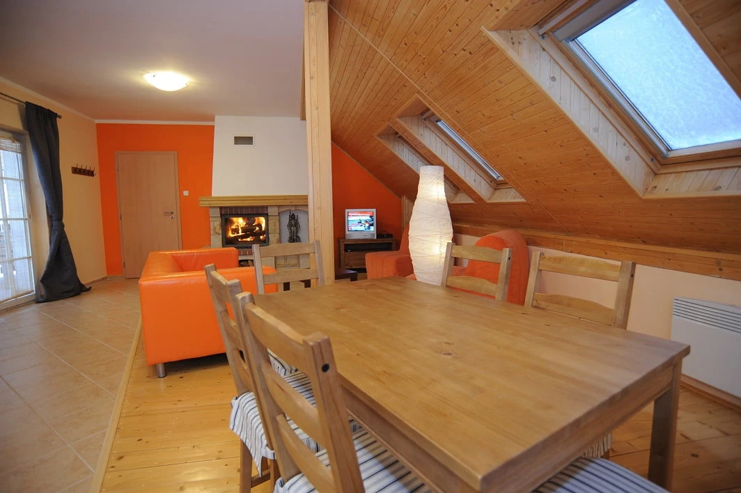 Podkrovní apartmán na Malé Skále – útulné ubytování s krbem