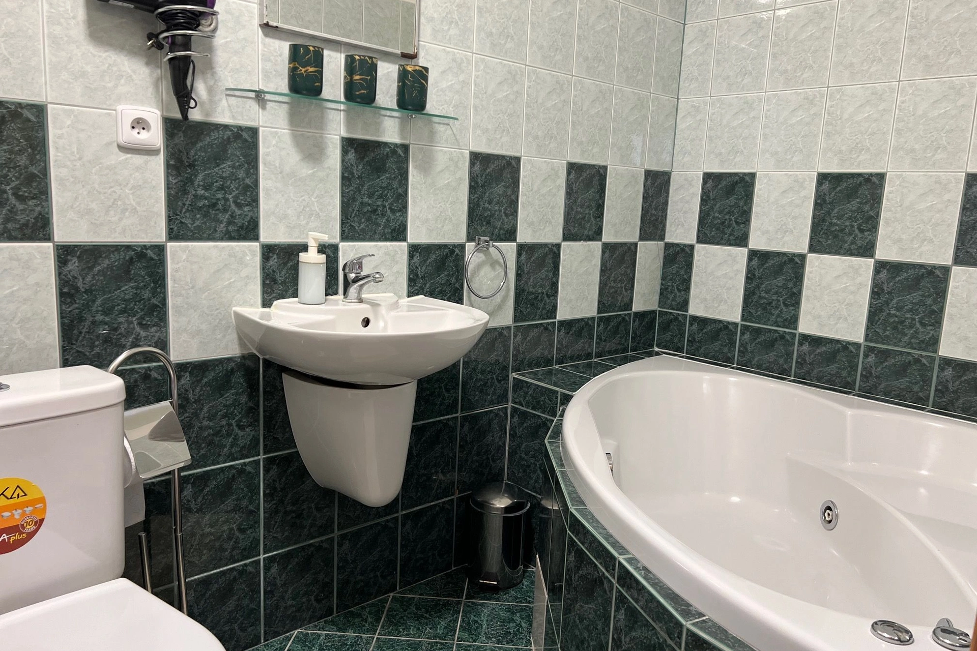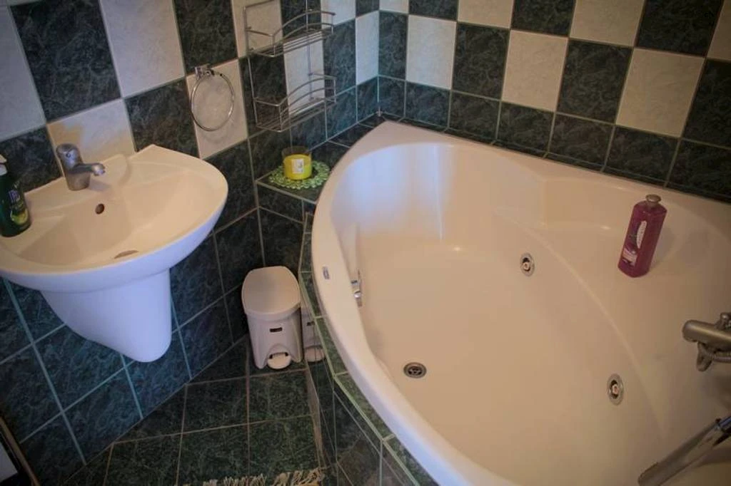 - Apartmán s rohovou vanou místo sprchového koutu