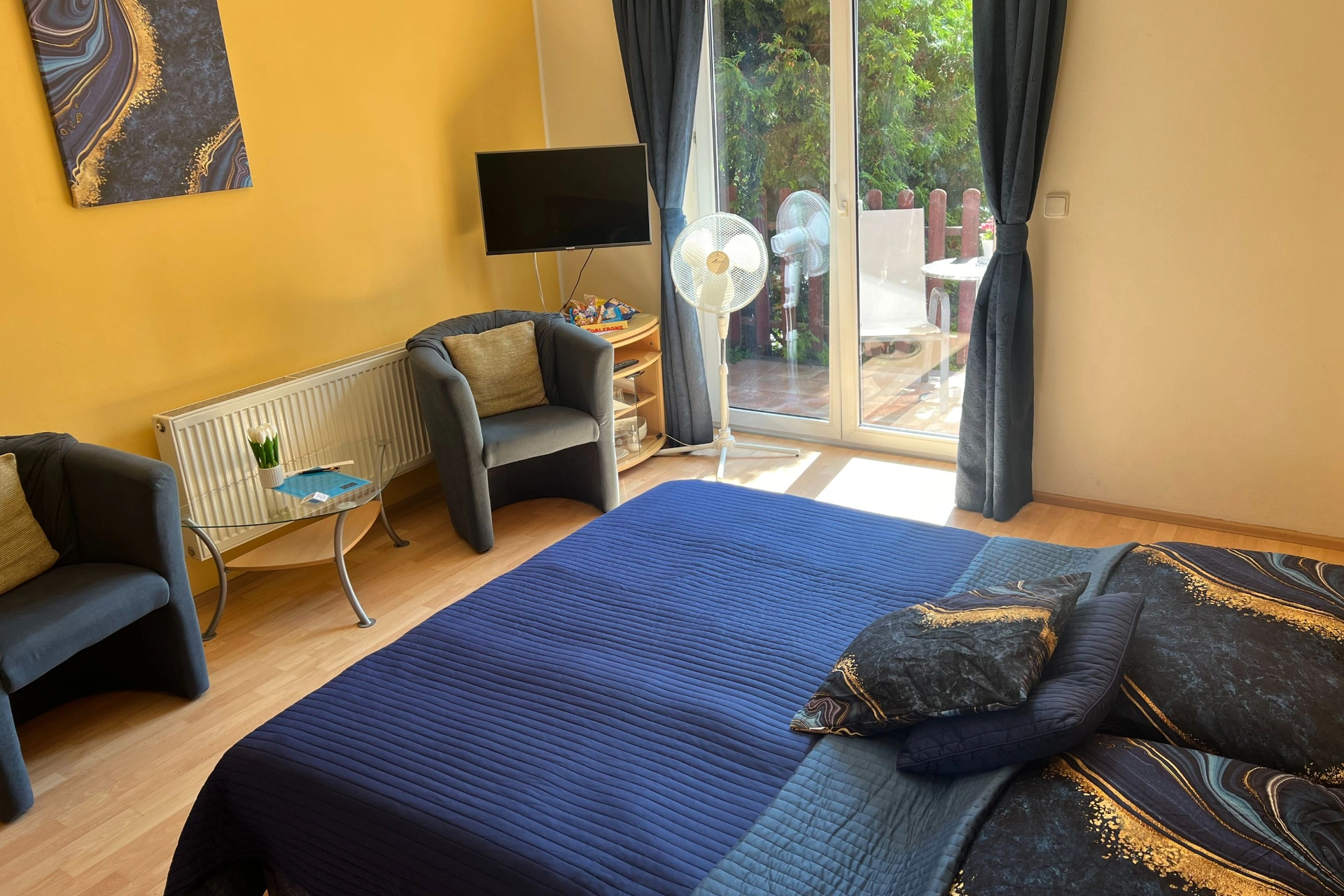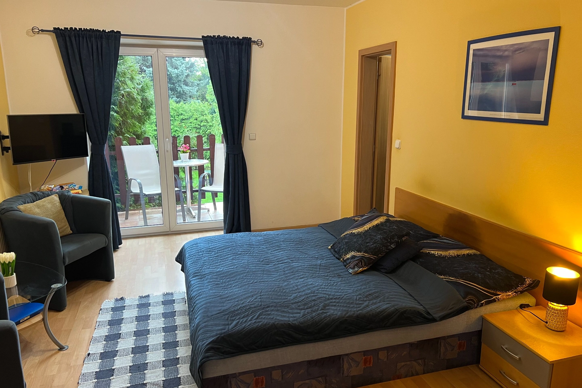 - Třílůžkový pokoj s terasou (manželské a samostatné lůžko)
