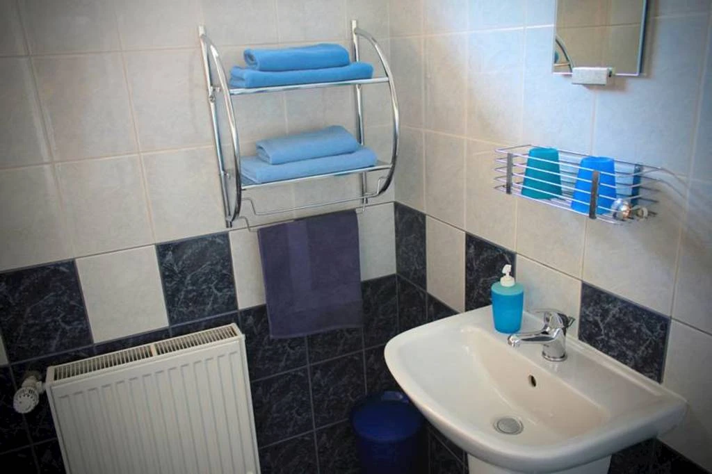 Koupelna je vybavena vanou, umyvadlem a toaletou. K dispozici je také fén a čisté ručníky. V apartmánu se nachází minibar pro úschovu nápojů a drobného občerstvení. Celkově apartmán nabízí praktické a komfortní zázemí pro pobyt.