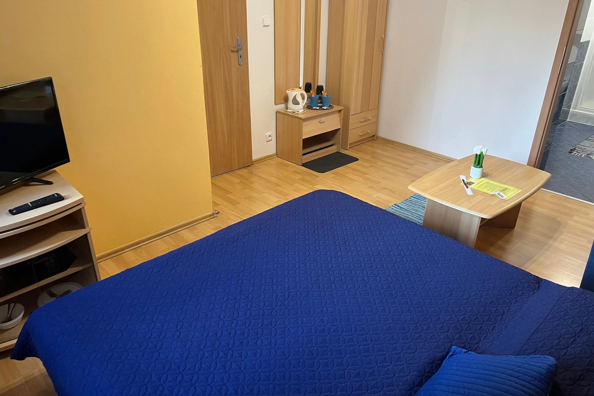 Pokoj v Ubytování Nikol je útulně zařízený a nabízí pohodlí a moderní vybavení pro váš příjemný pobyt. Tento dvoulůžkový pokoj je vybaven manželskou postelí a je ideální pro páry nebo dvojice cestovatelů. V ložnici najdete televizi, která poskytuje možnost večerní zábavy, a také bezplatný přístup k WiFi internetu pro vaše online potřeby.Pro vaše pohodlí je k dispozici minibar, kde si můžete uložit drobné občerstvení nebo nápoje. Pokoj je dále vybaven rychlovarnou konvicí pro přípravu teplých nápojů. V koupelně s toaletou najdete sprchu, umyvadlo a fén, což vám zajistí, že se můžete osvěžit a upravit dle potřeby. Samozřejmostí jsou čisté ručníky připravené k použití.Celkově je zařízení pokoje navrženo tak, aby vám poskytlo komfort a pohodlí během vašeho pobytu v Ubytování Nikol.