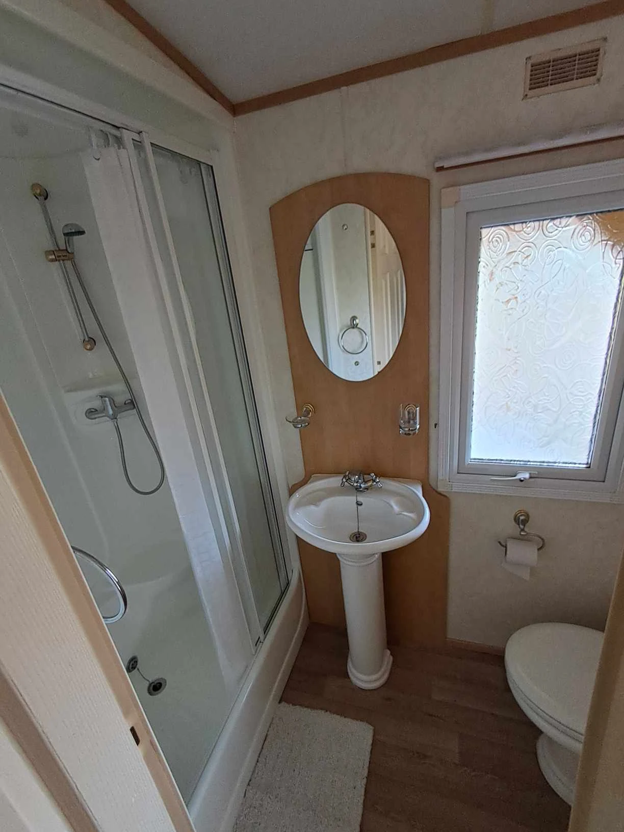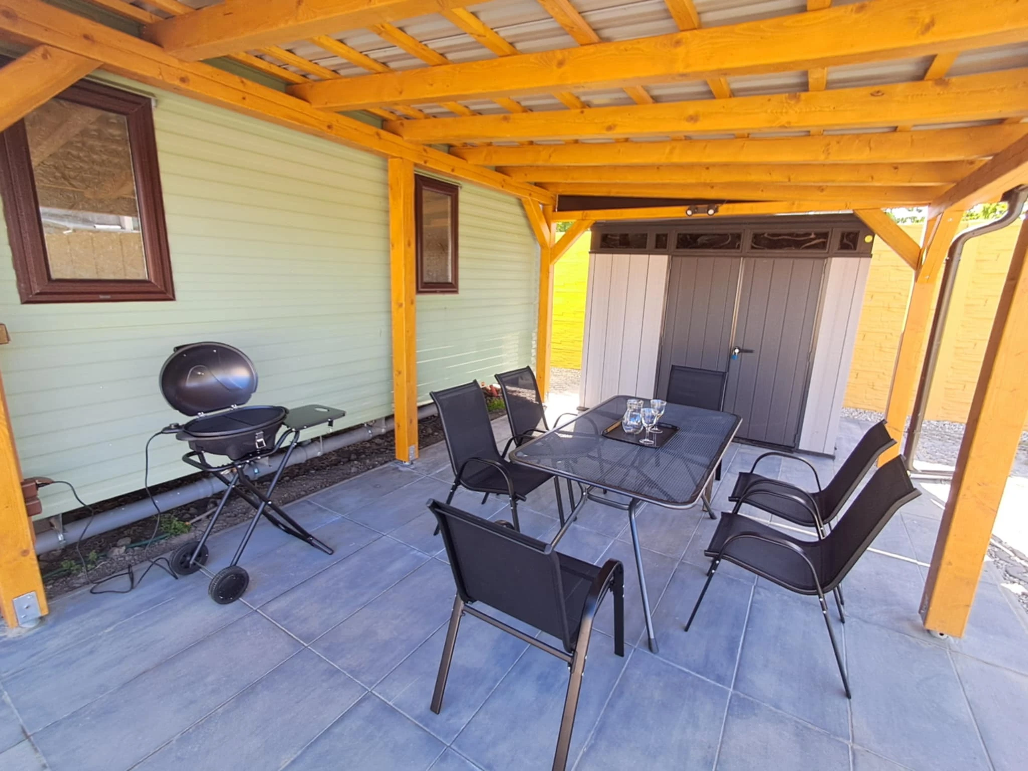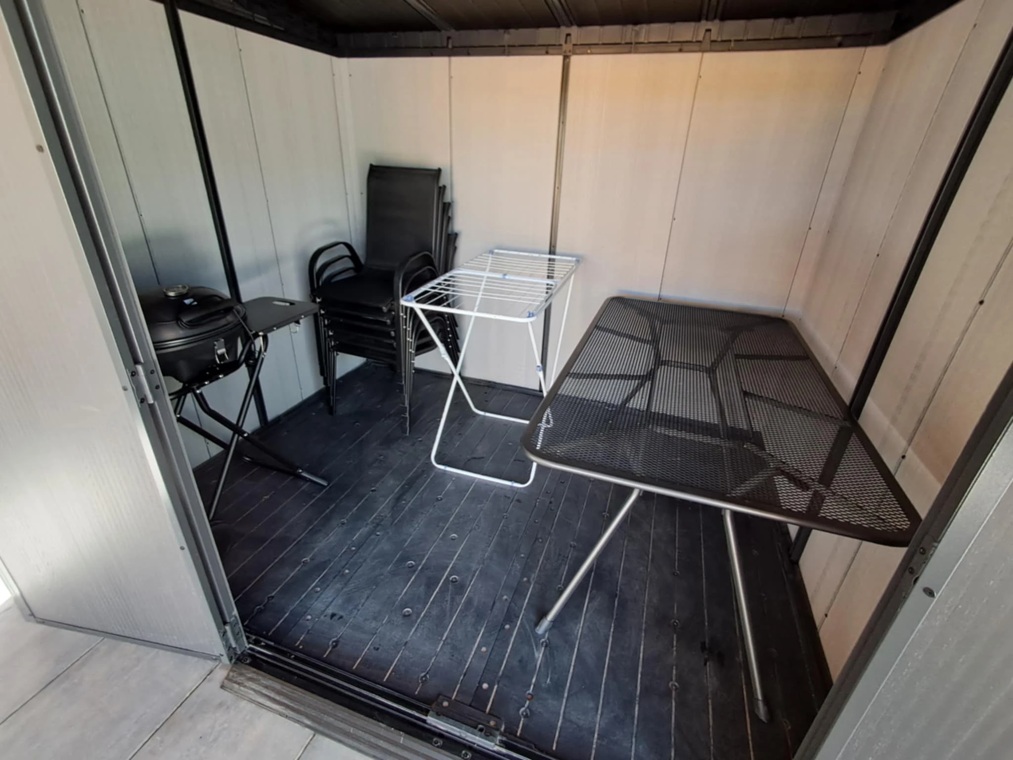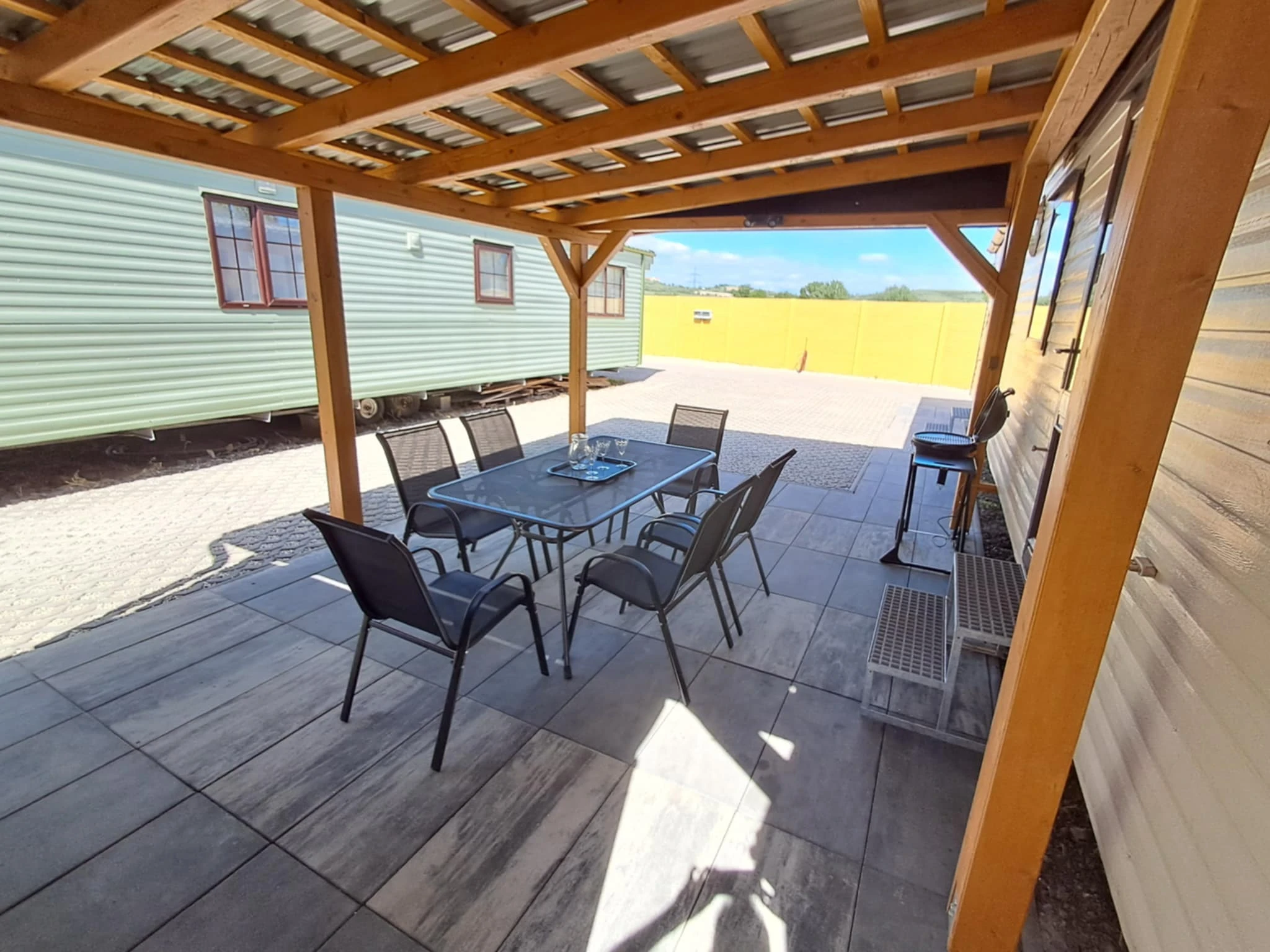 Koupelna je vybavena sprchovým koutem a toaletou. Samozřejmostí je WiFi připojení, venkovní posezení a možnost grilování. Parkování je zajištěno přímo u mobilheimu.