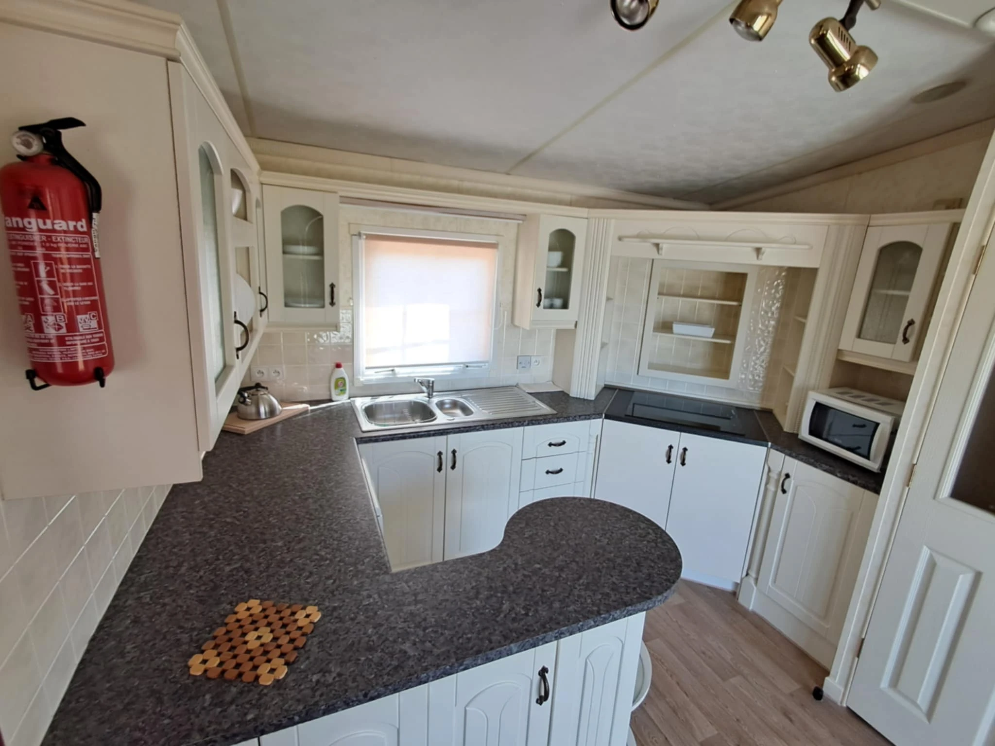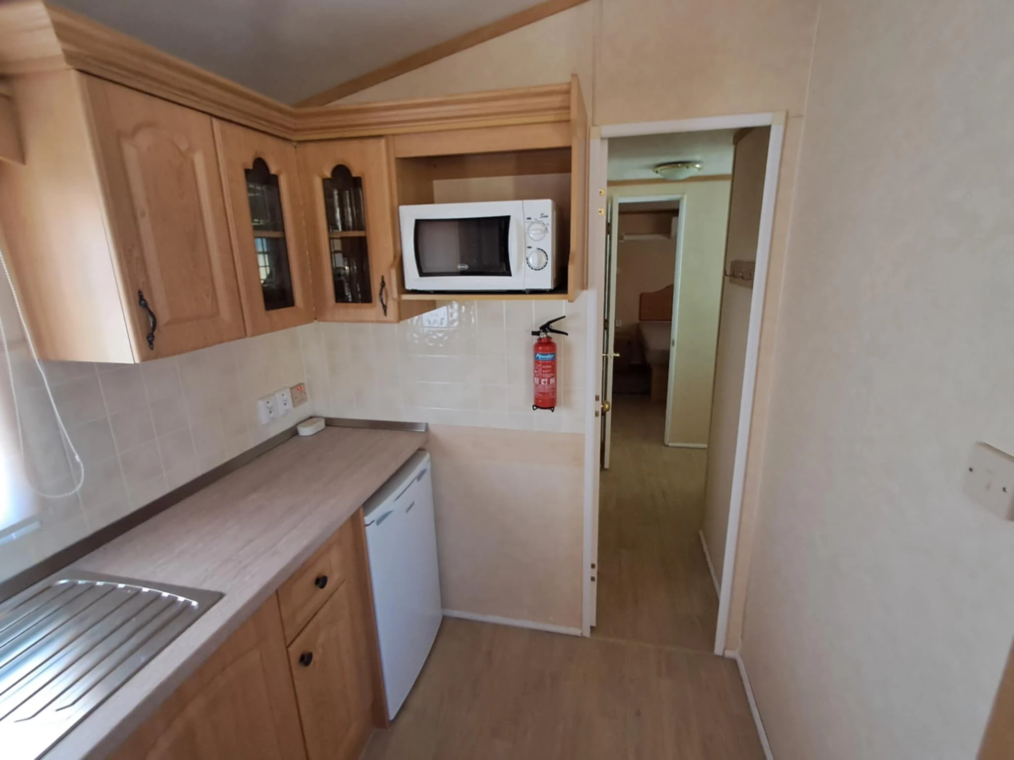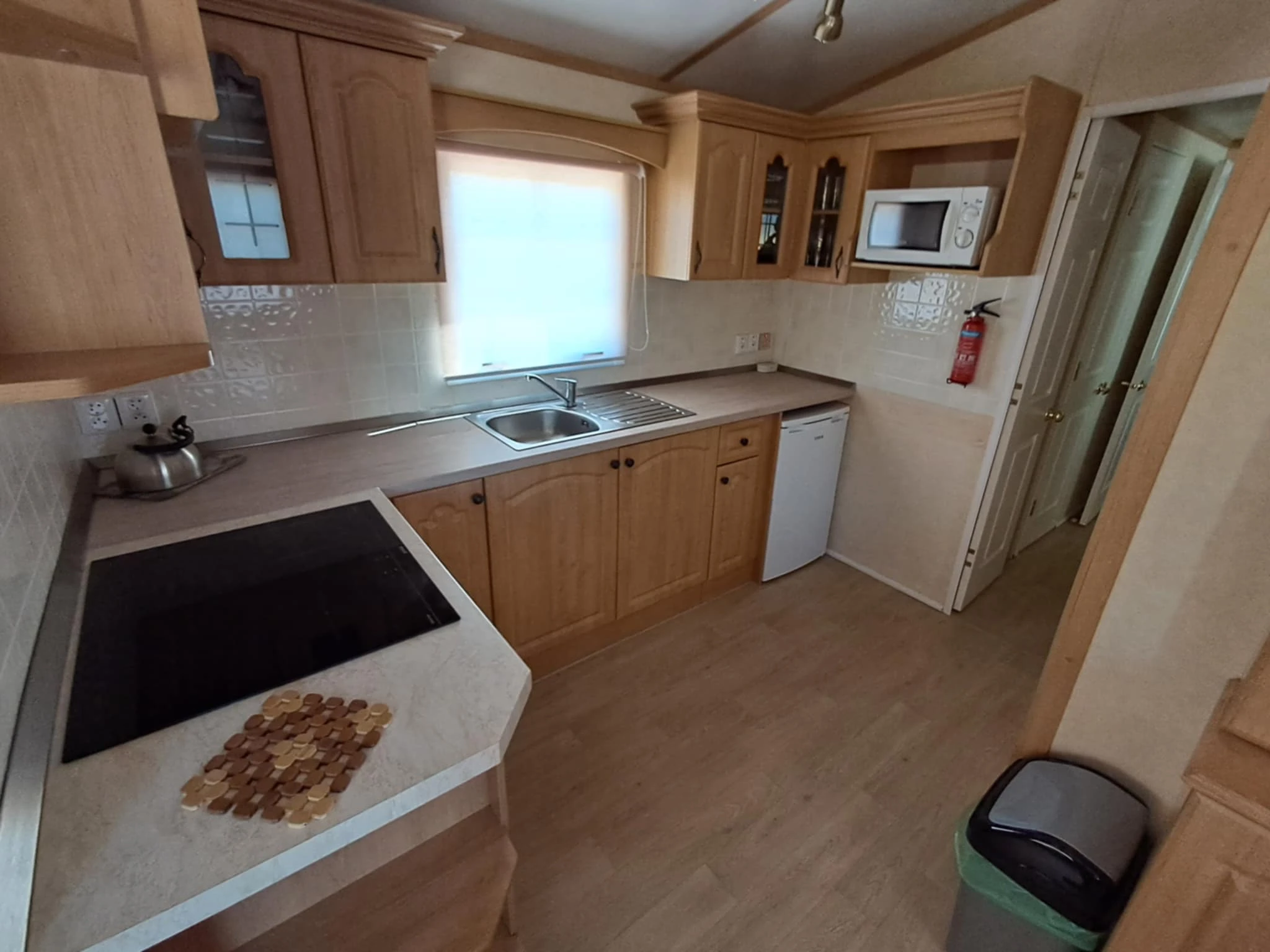 Kuchyňský kout obsahuje lednici, mikrovlnnou troubu, varnou desku, rychlovarnou konvici a základní nádobí. Součástí mobilheimu je vlastní koupelna se sprchovým koutem a toaletou.