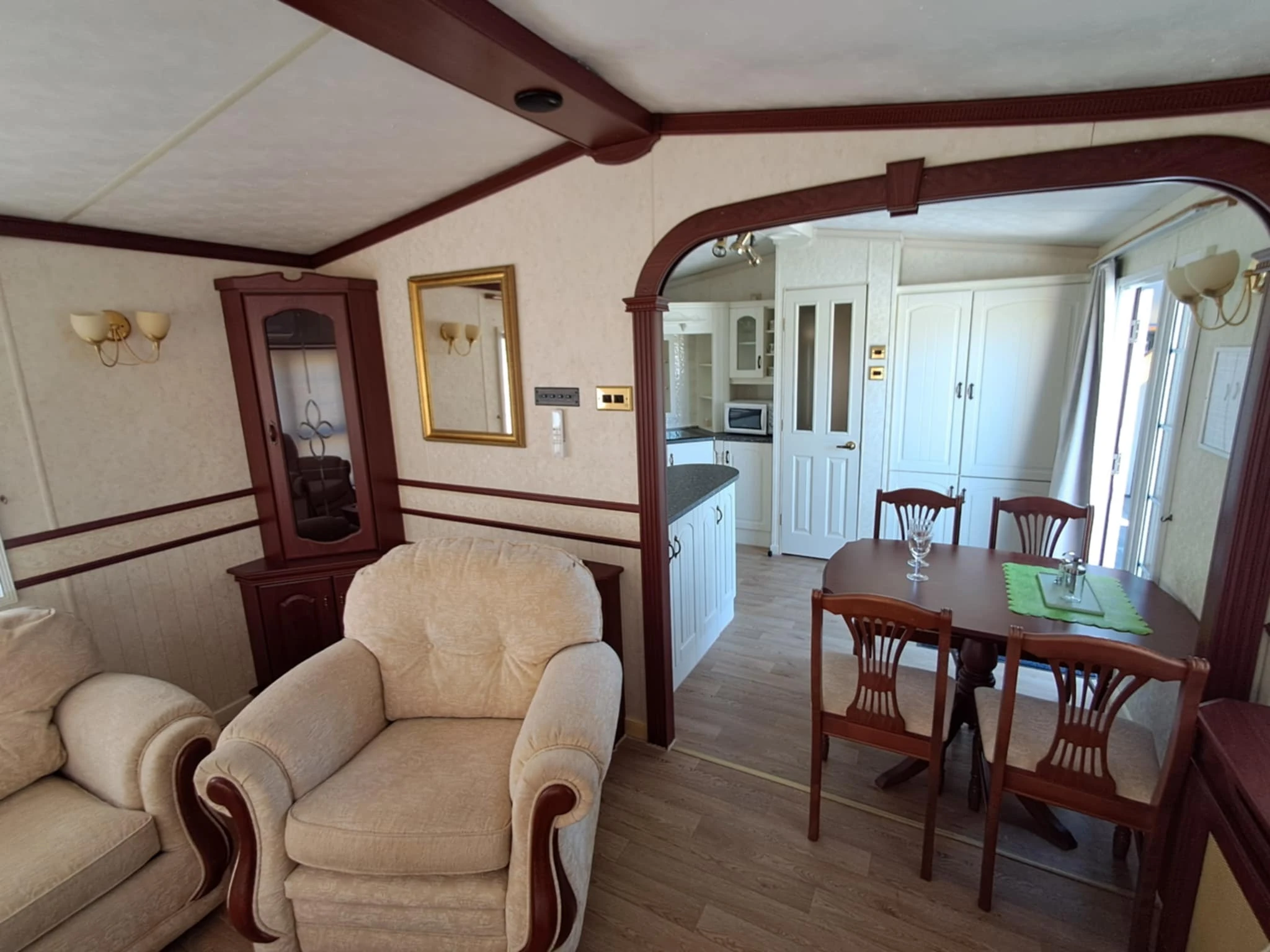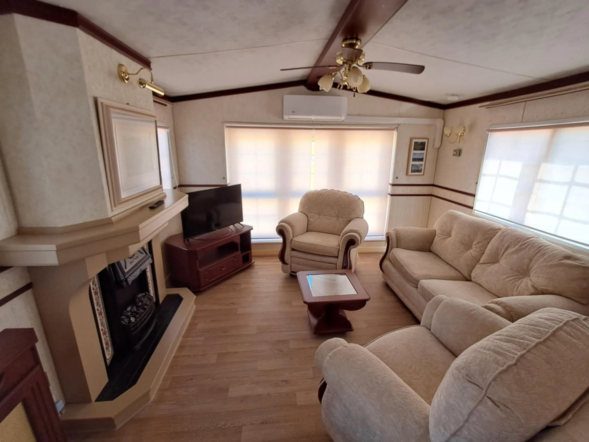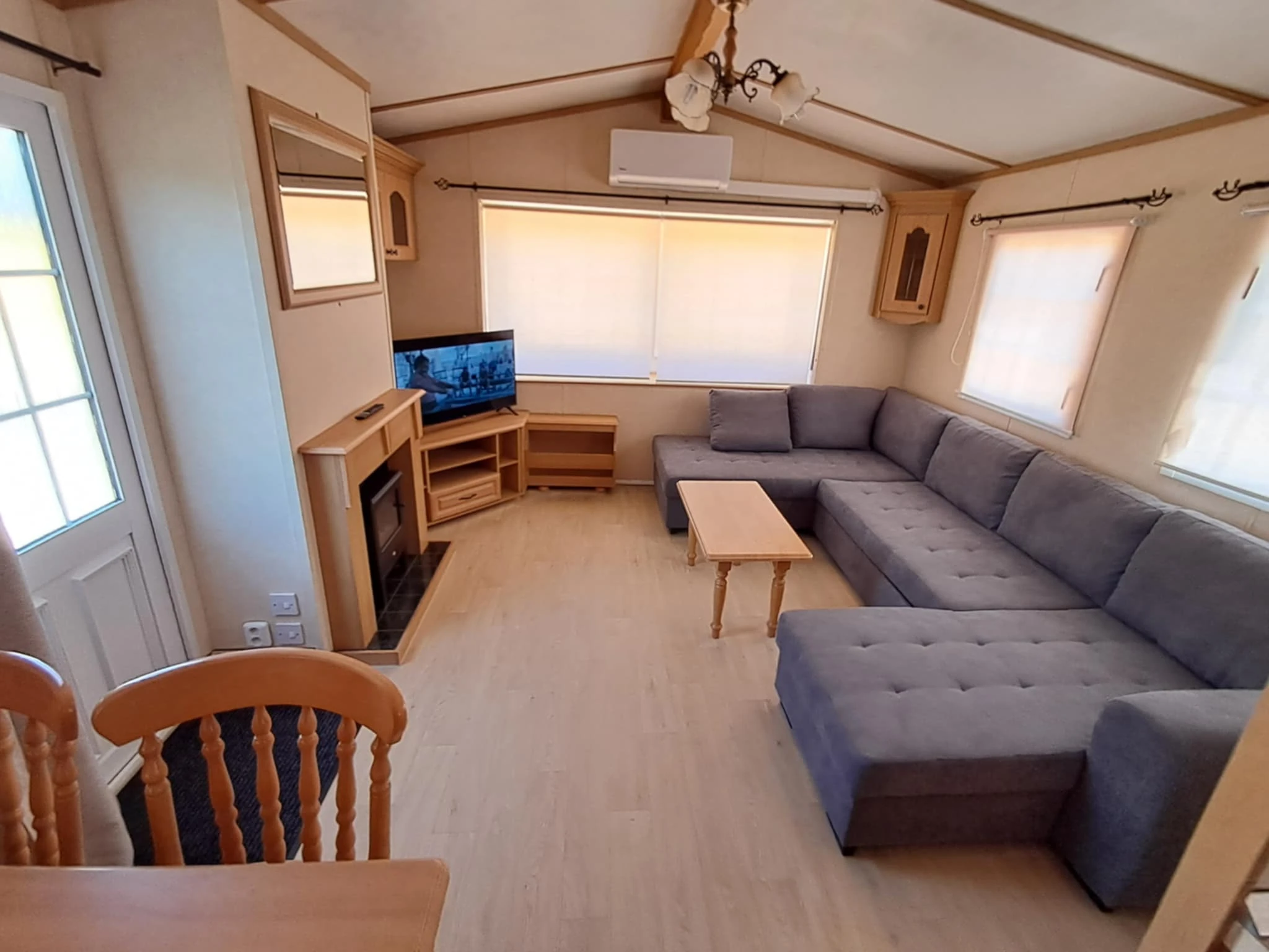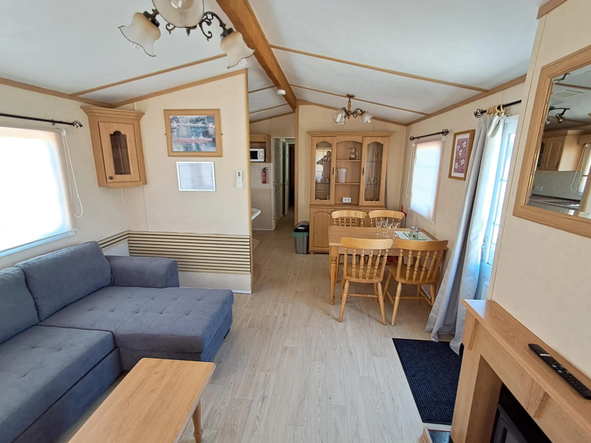 Mobilheim Hathaway nabízí ubytování až pro čtyři osoby. K dispozici je jedna ložnice s manželskou postelí a druhá ložnice se dvěma samostatnými lůžky. Obývací prostor je vybaven stolem, židlemi a televizí.