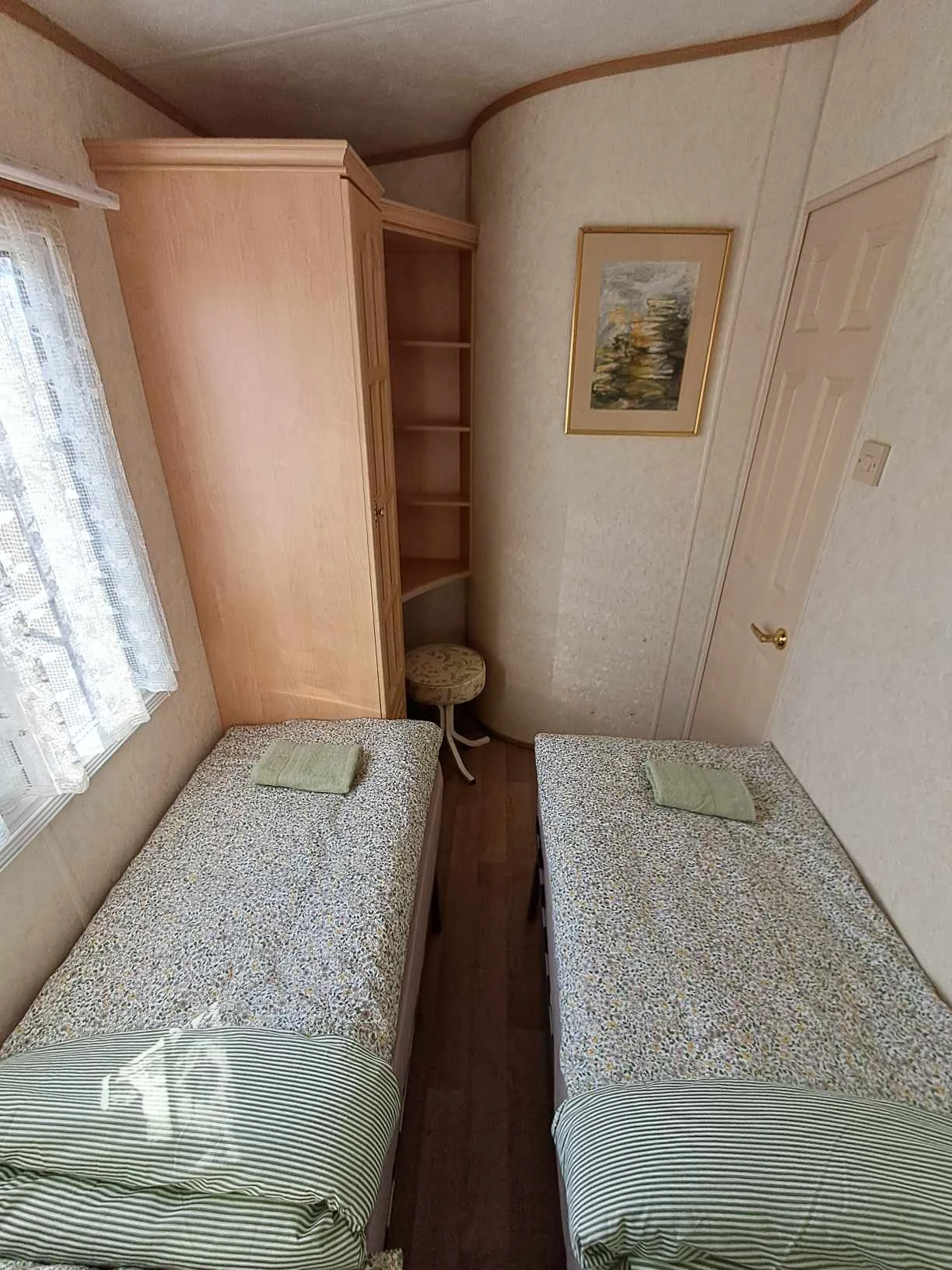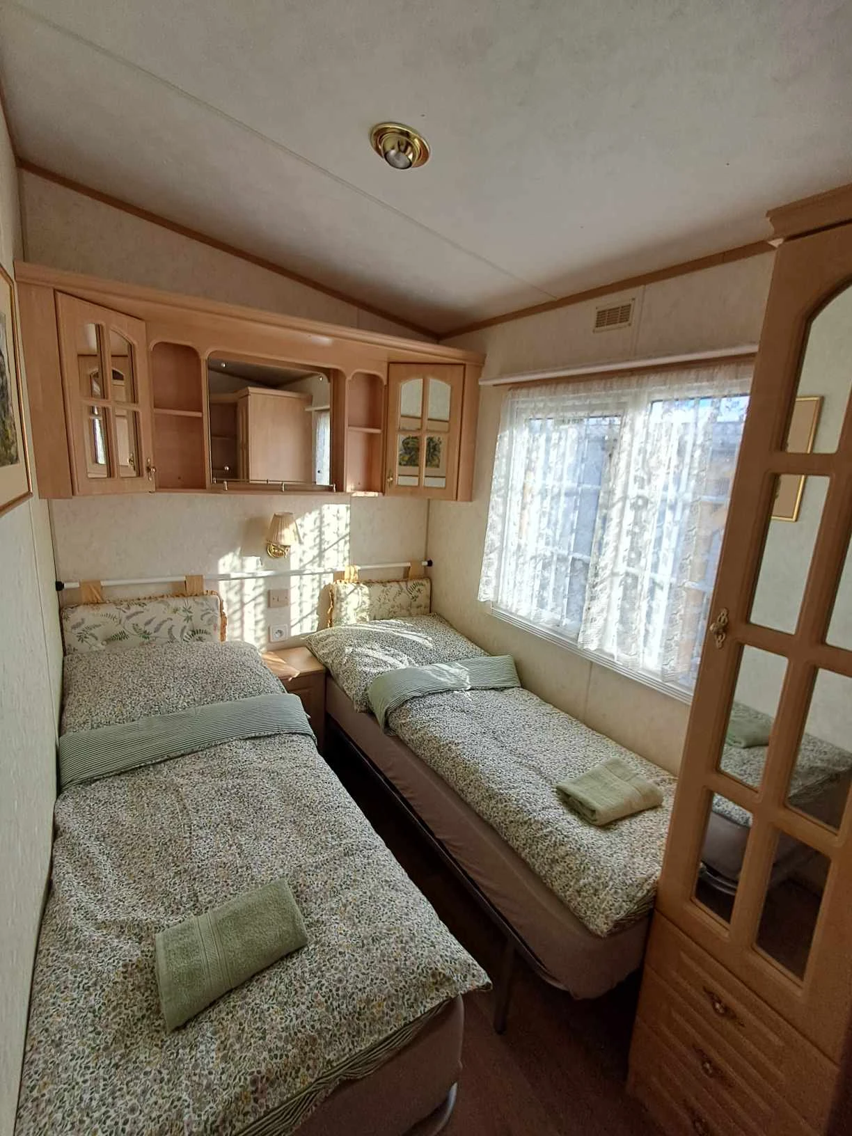 Mobilheim Vogue je také určen pro čtyři osoby. Disponuje jednou ložnicí s manželskou postelí a druhou ložnicí se dvěma oddělenými lůžky.