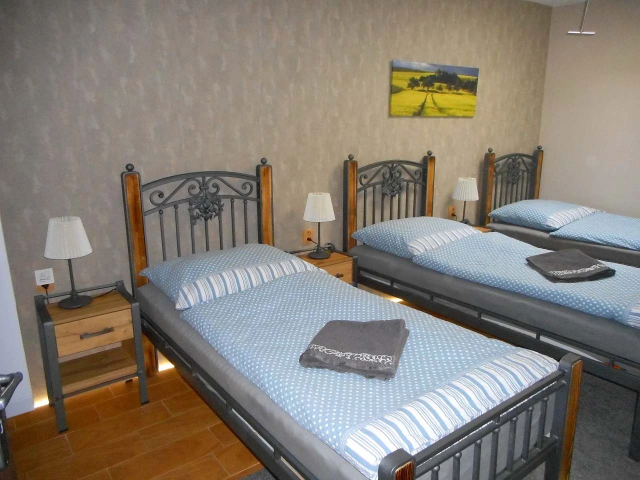 Apartmán "Ubytování Pod věží" nabízí pronájem pro 4 až 7 osob ve třech ložnicích. První ložnice je vybavena dvoulůžkem, druhá ložnice má dvě oddělená lůžka a třetí ložnice má tři oddělená lůžka. K dispozici je plně vybavená kuchyně s jídelním koutem a prostor vinného sklepa s možností posezení u krbu. Sociální zařízení zahrnuje dvě toalety a jednu prostornou koupelnu. Vytápění je zajištěno elektrickými topidly a krbovými kamny.