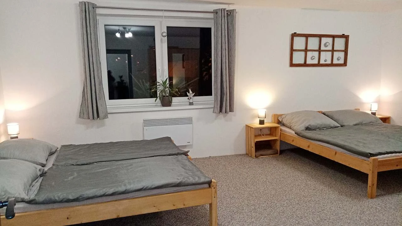 Chalupa k pronájmu poskytuje ubytování pro 1 až 14 osob ve 3 ložnicích.