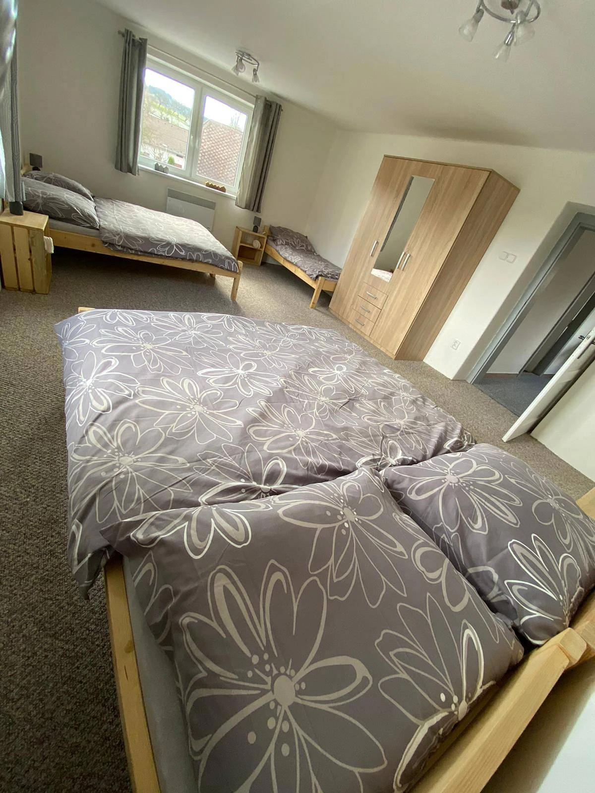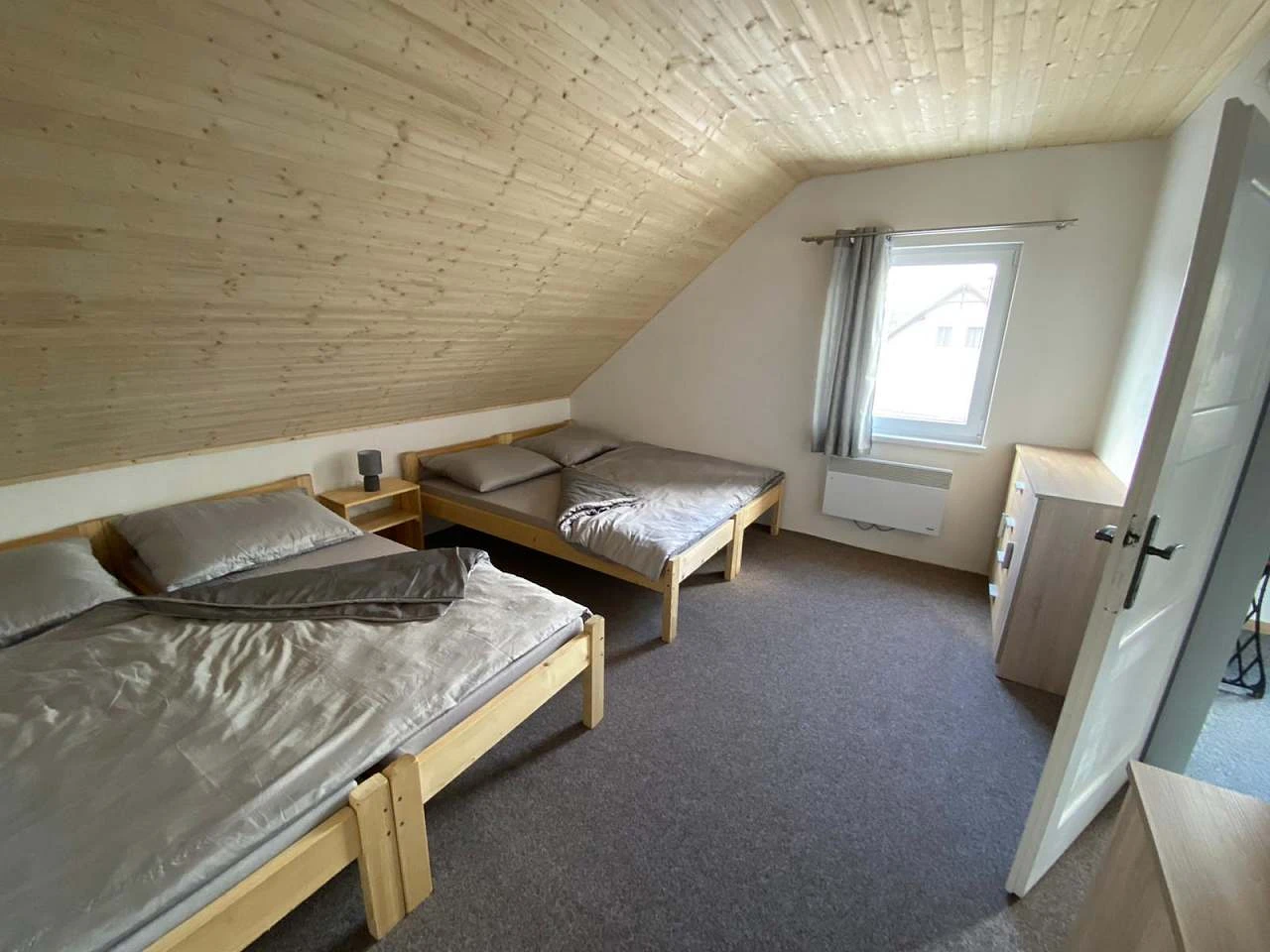 Druhé podlaží: Obsahuje 2 pokoje. Jeden pokoj má 4 lůžka a dětskou postýlku, druhý pokoj má 5 lůžek a dětskou postýlku.