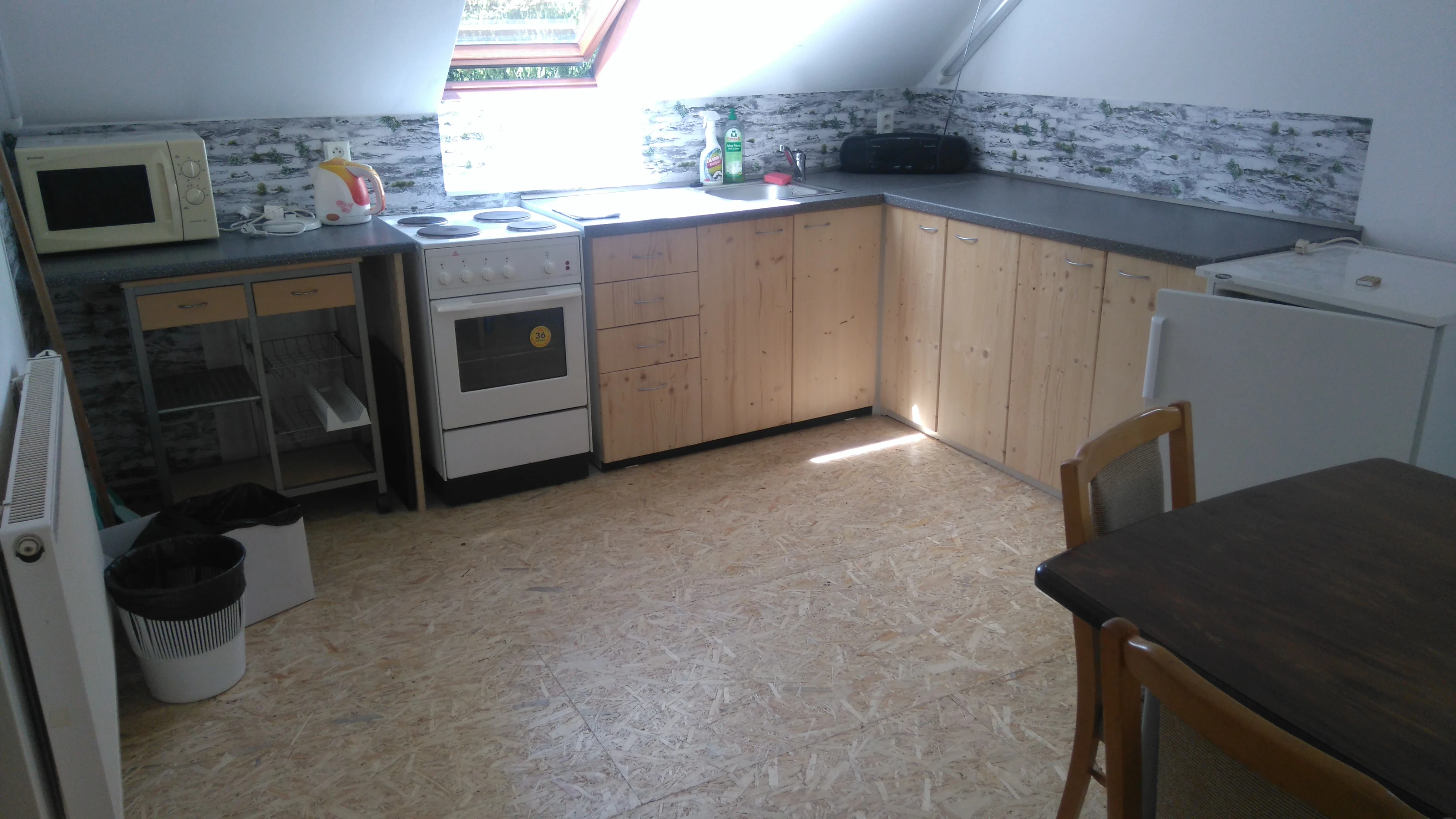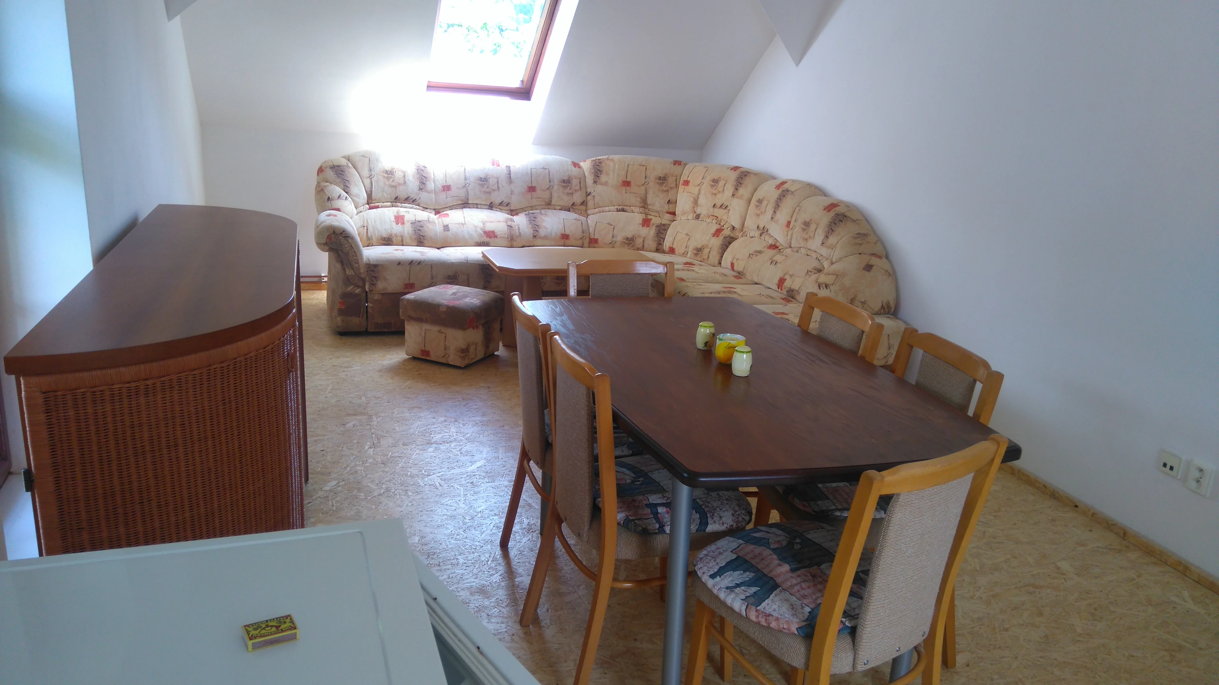 Pro ty, kteří hledají větší prostor, je k dispozici apartmán v podkroví (4+2). Apartmán má ložnici se třemi lůžky, kuchyň spojenou s obývacím pokojem a rozkládací pohovkou. Součástí apartmánu je také vlastní sociální zařízení se sprchovým koutem, což zajišťuje maximální pohodlí.