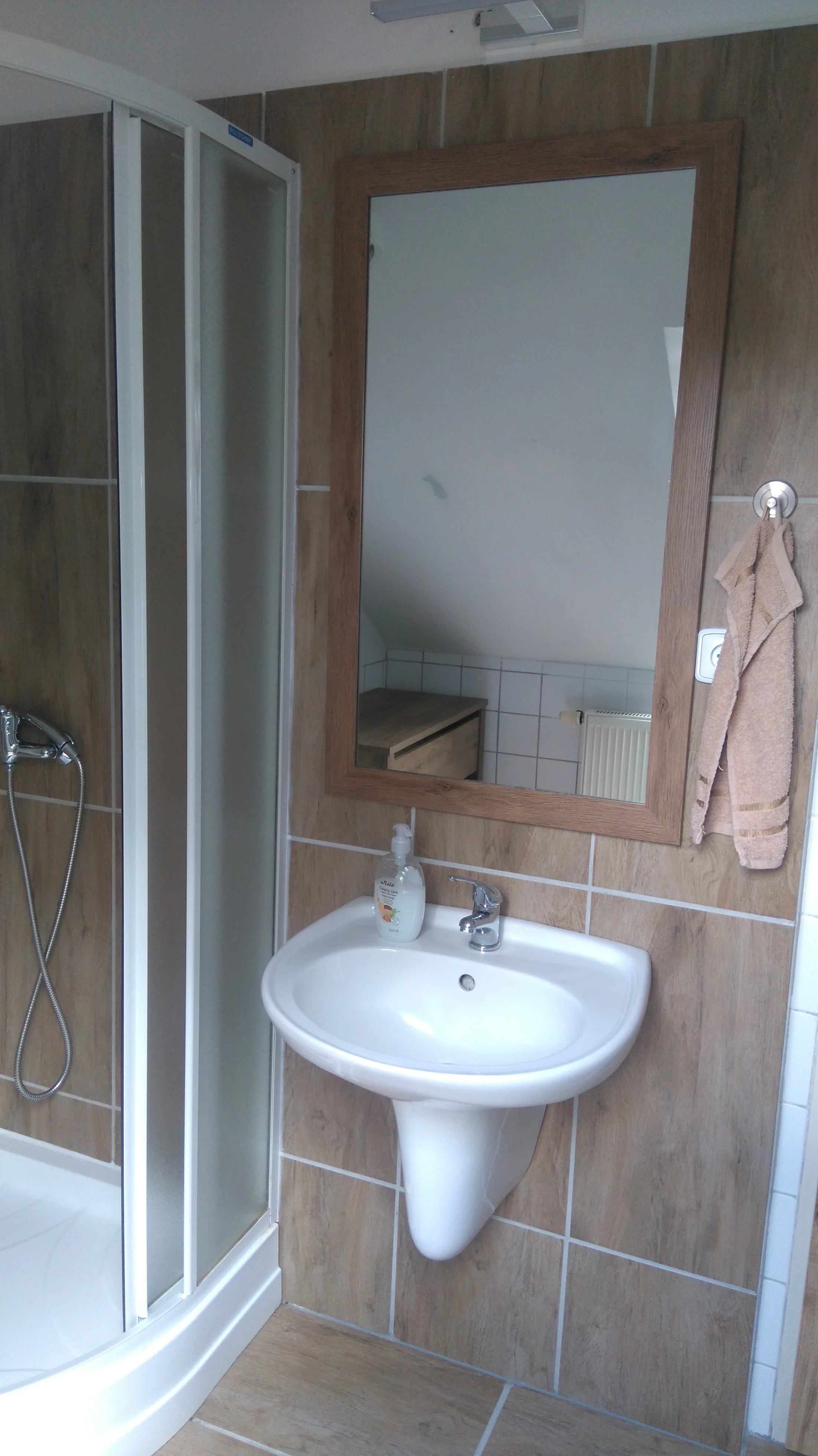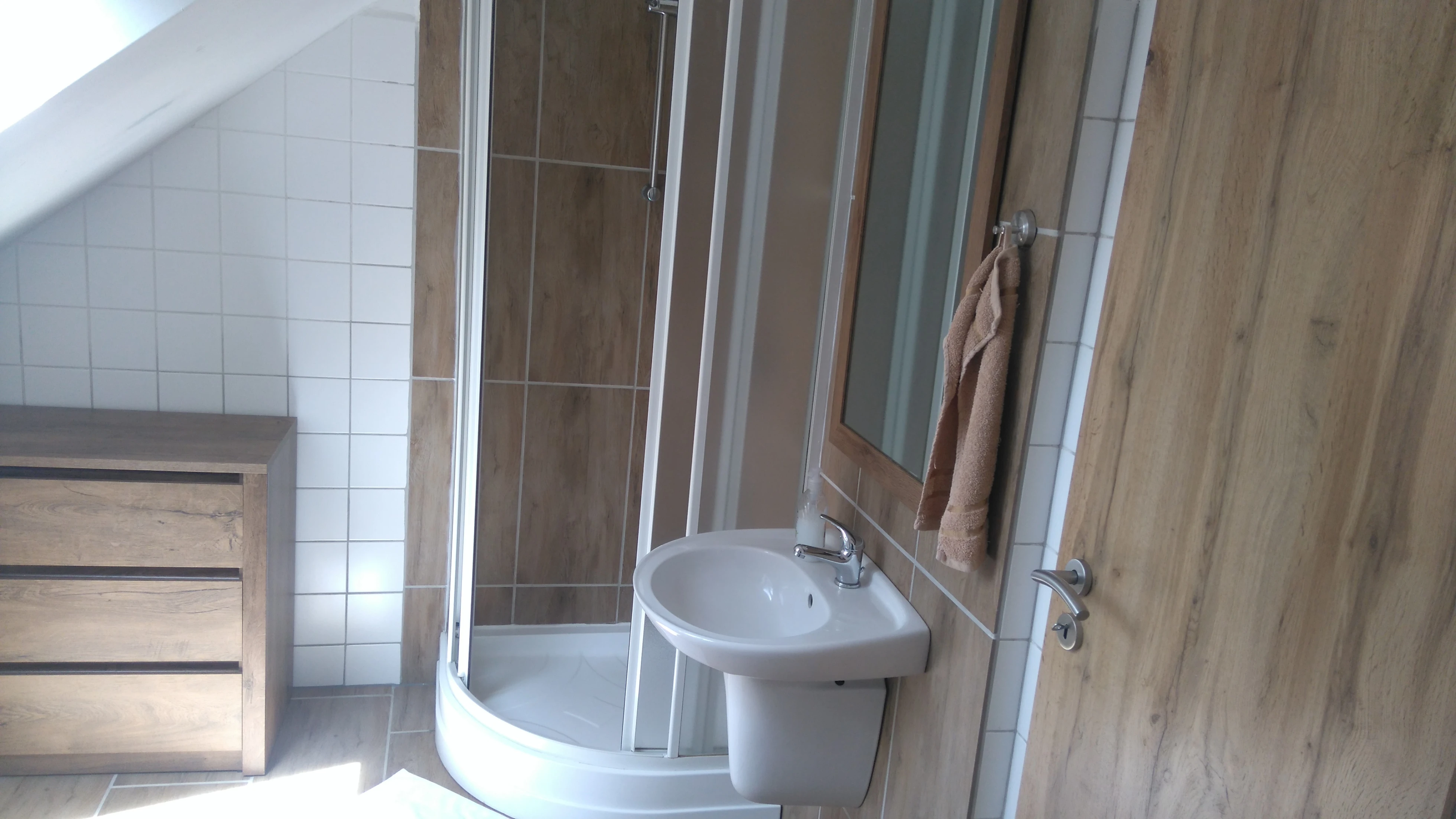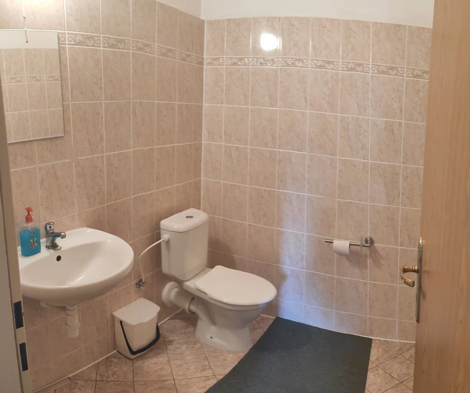 Sociální zařízení jsou sdílené na chodbě, oddělené sprchy, WC a umyvadla.