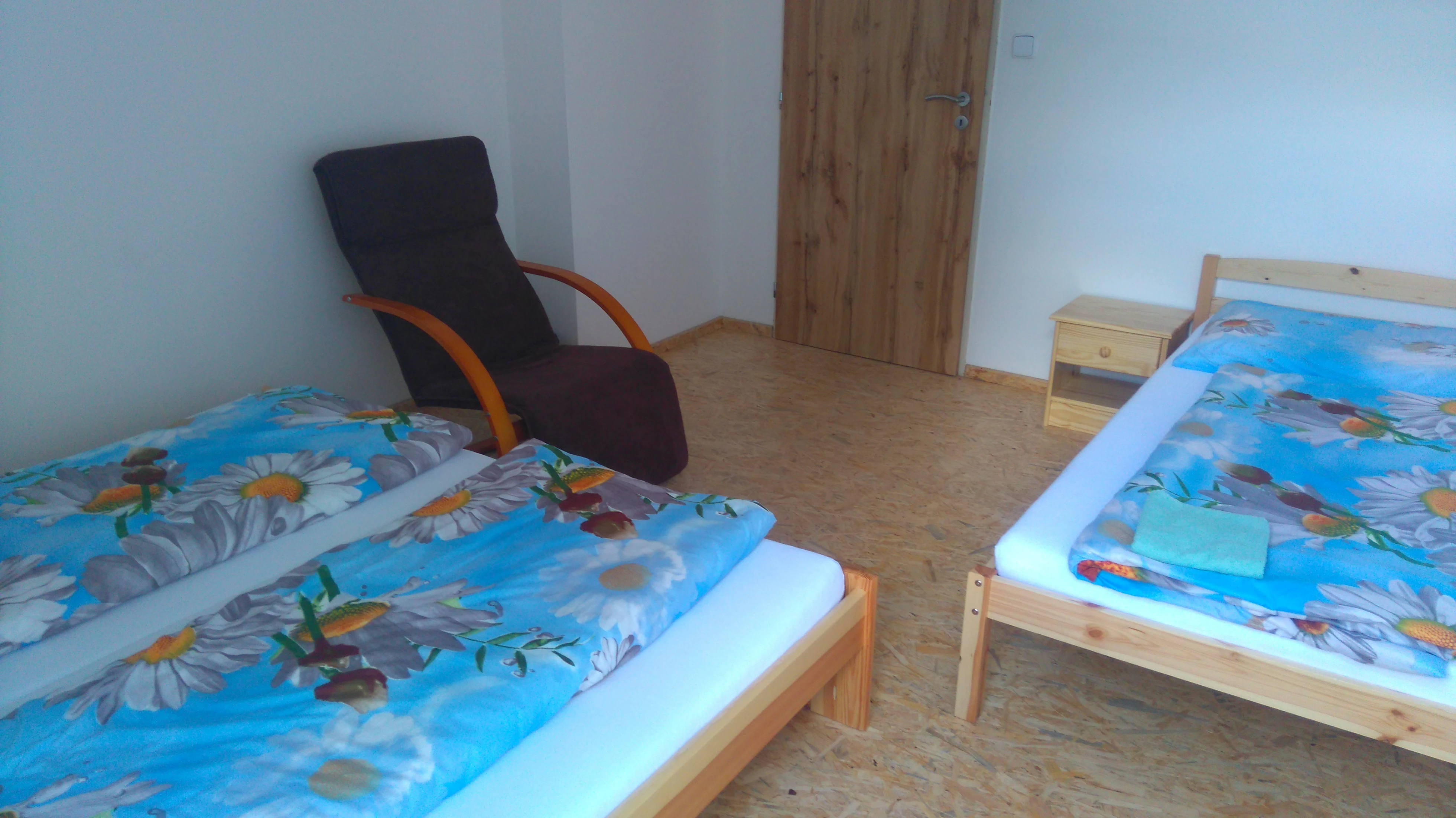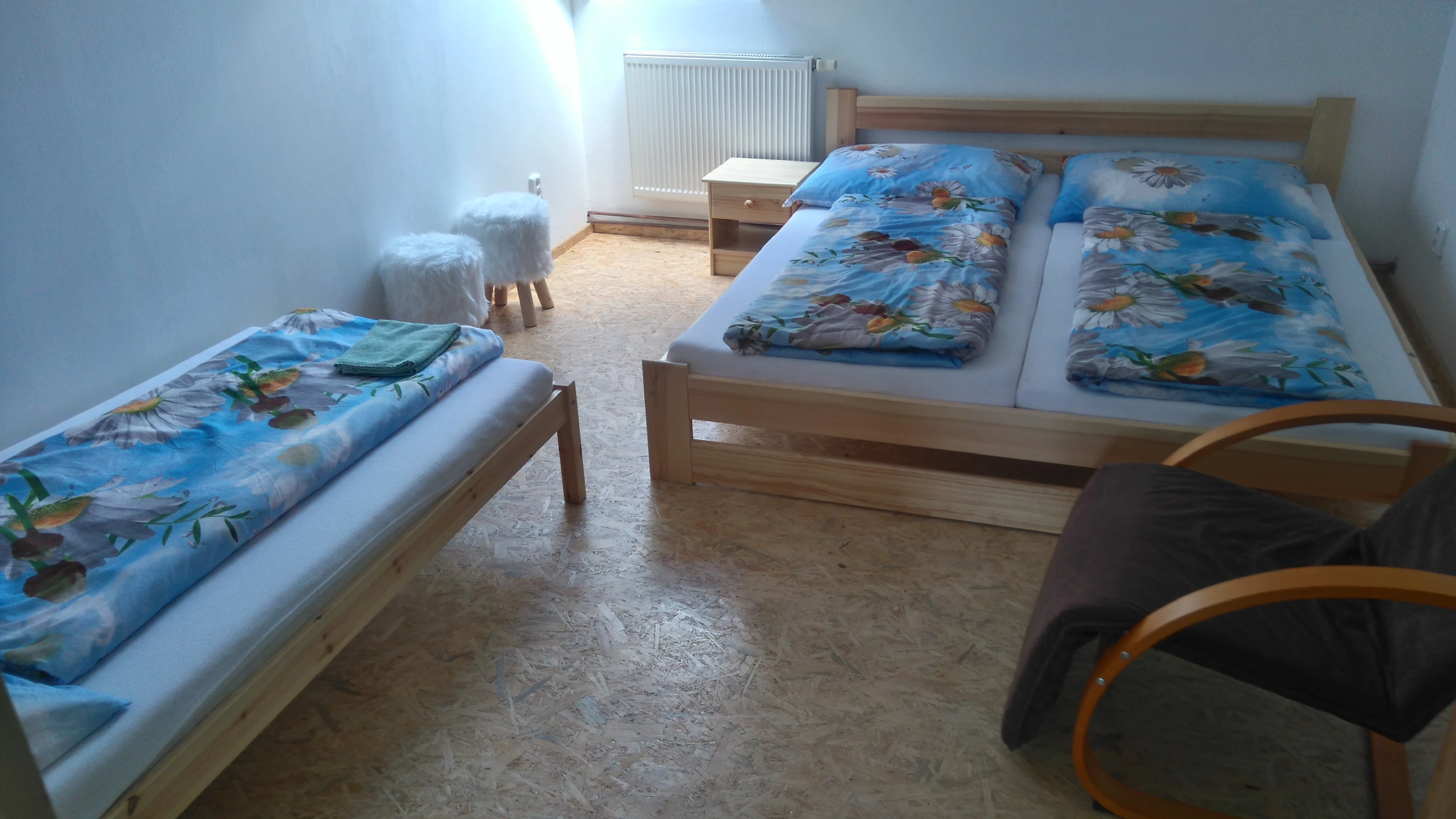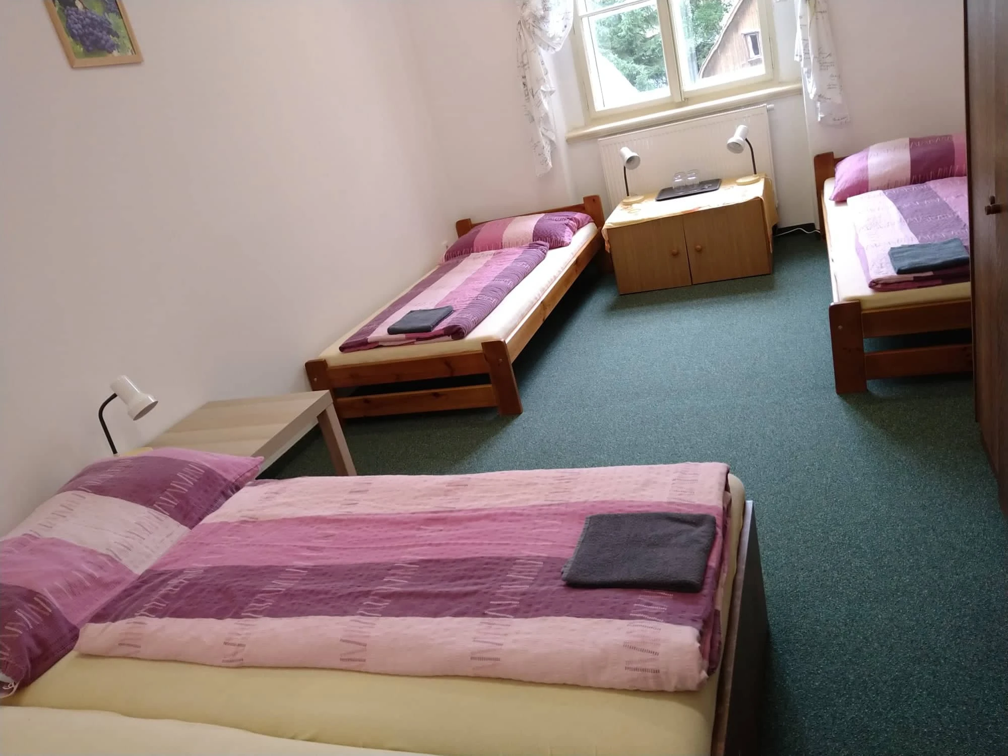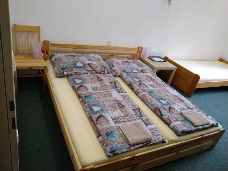 Pokoje: jednolůžka, dvoulůžka, patrová postel, sdílené sociální zařízení.