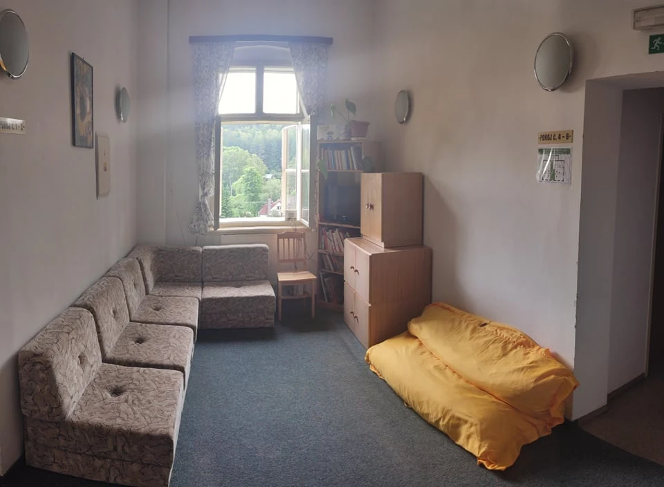 Společné prostory: multifunkční místnost, stolní tenis, gauče, volný prostor na cvičení/tanec.