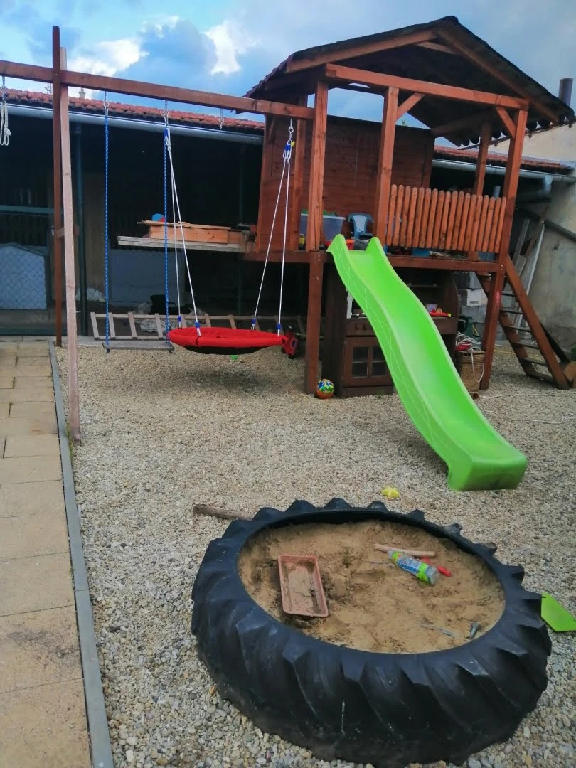 K ubytování patří oplocená zahrada, kde společně strávíte pěkné chvilky posezením na zastřešené terase. K dispozici je i gril i zahradní houpačka. Děti se během vašeho odpočinku vyřádí v dětském domečku se skluzavkou nebo na pískovišti. Hraček je tu pro nejmenší děti spousta.
