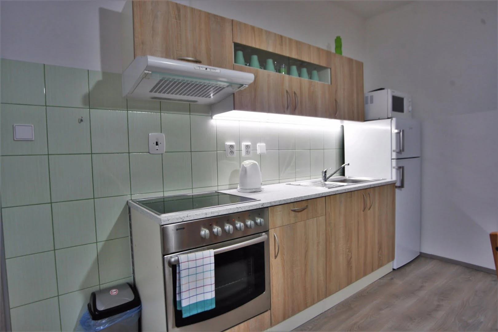 Apartmán má plně vybavenou kuchyňskou linku s horkovzdušnou troubou, sklokeramickou varnou deskou, ledničkou, mikrovlnnou troubou a rychlovarnou konvicí. Spánek si dopřejete v ložnici s jednou manželskou a dvěma samostatnými postelemi. V ložnici je pohovka, která může sloužit jako přistýlka. Koupelna je moderně zařízena se sprchovým koutem a WC je samostatně.