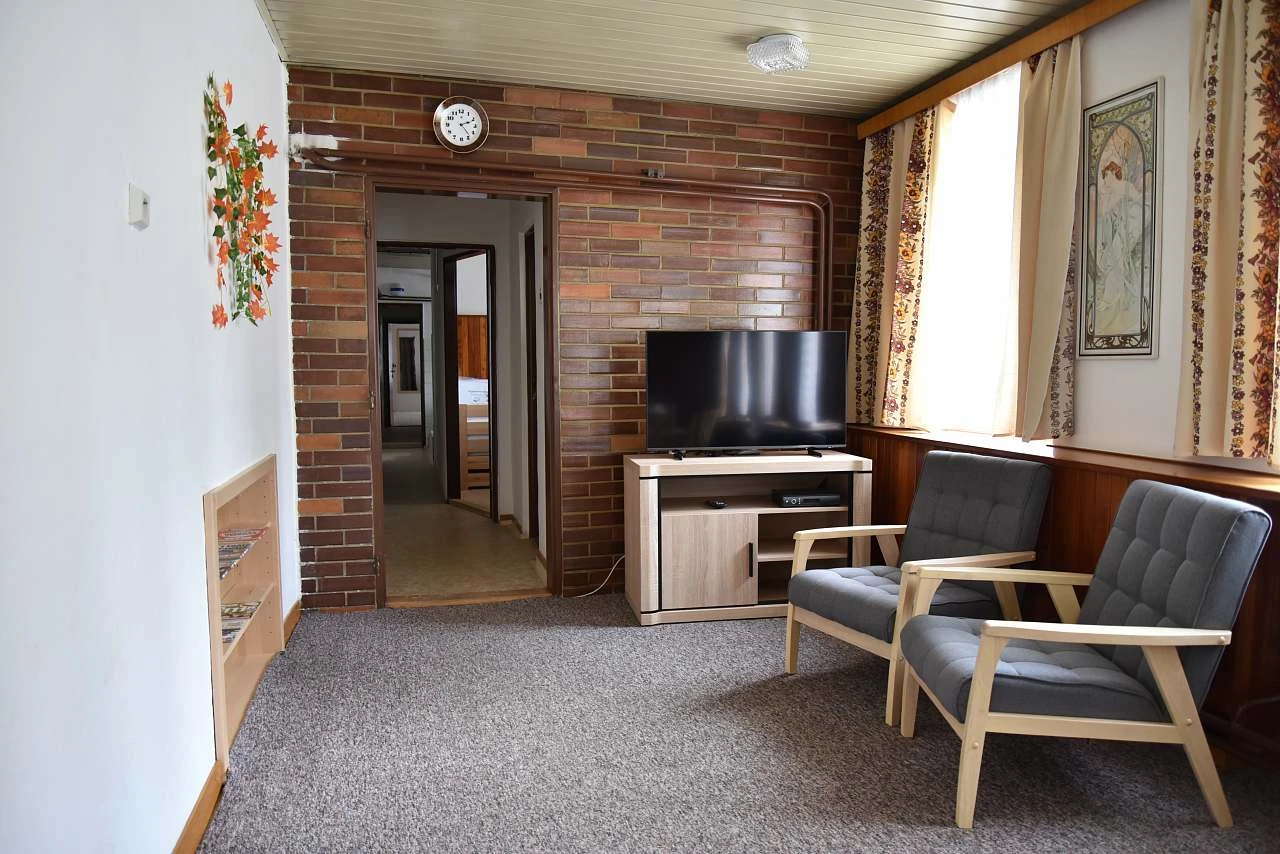 Chata k pronajmutí poskytuje ubytování pro 11 osob ve 3 ložnicích.