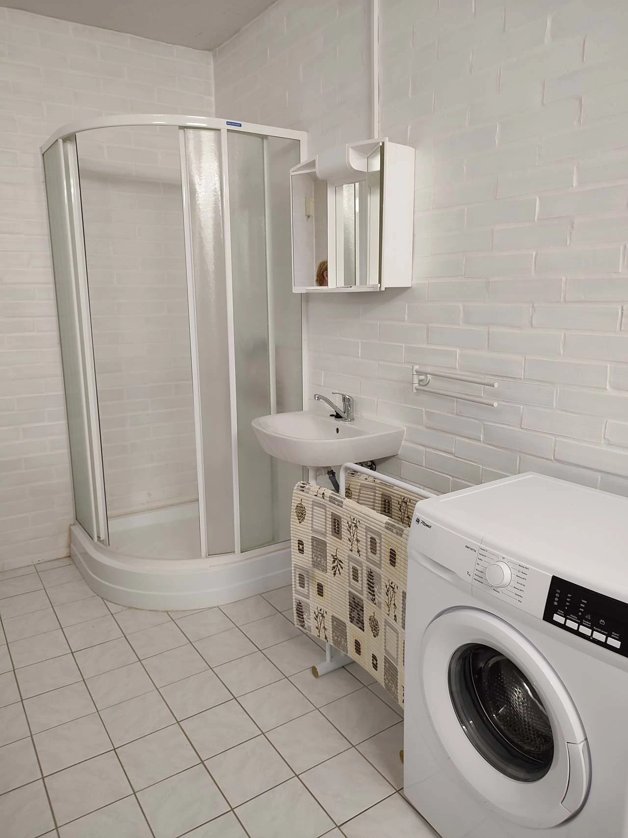 Koupelna má vanu i sprchový kout a pračku. Dvě WC jsou samostatně.