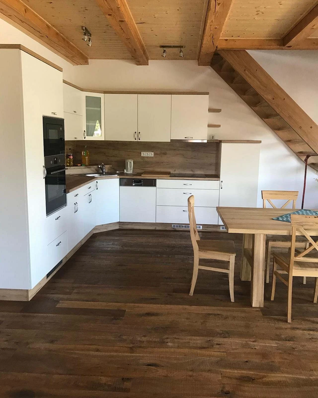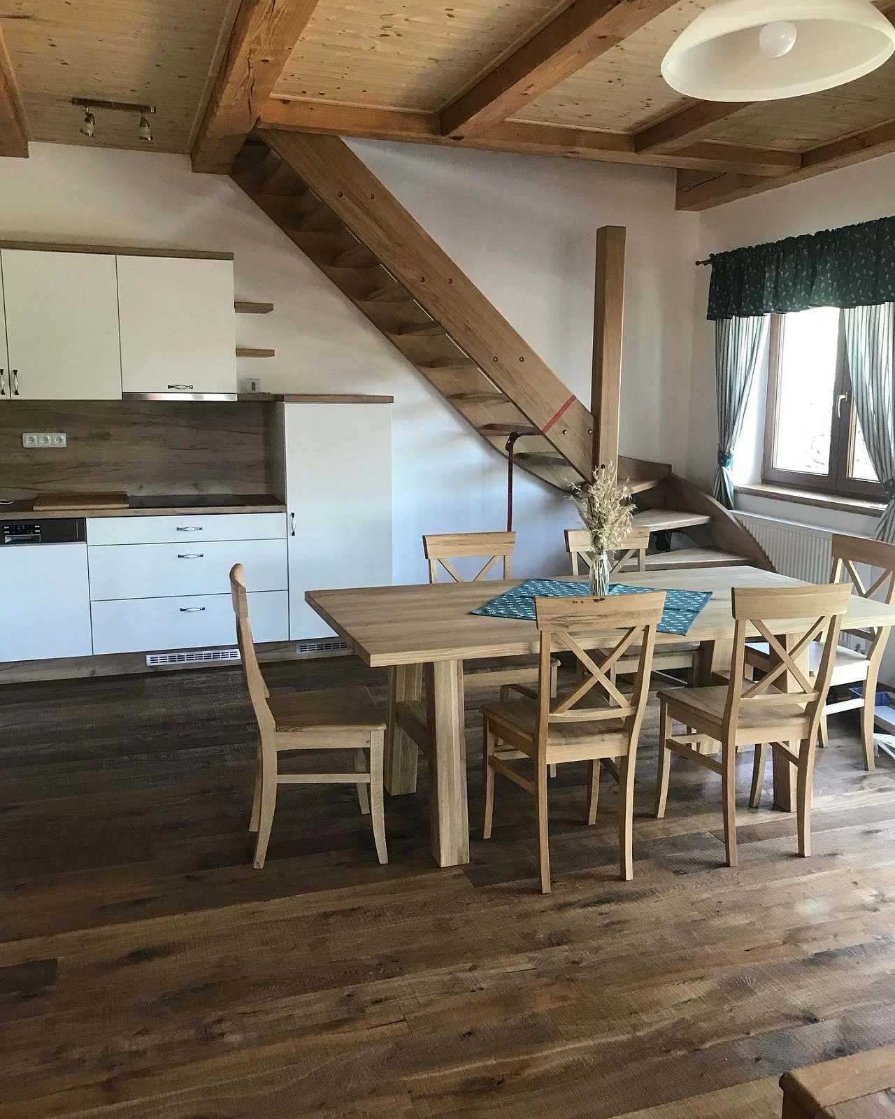 Prostorná obytná kuchyň spojená s obývacím pokojem. Kuchyňská linka, nádobí, indukční varná deska, trouba, mikrovlnná trouba, lednička s mrazákem. TV, WiFi, plynový gril.