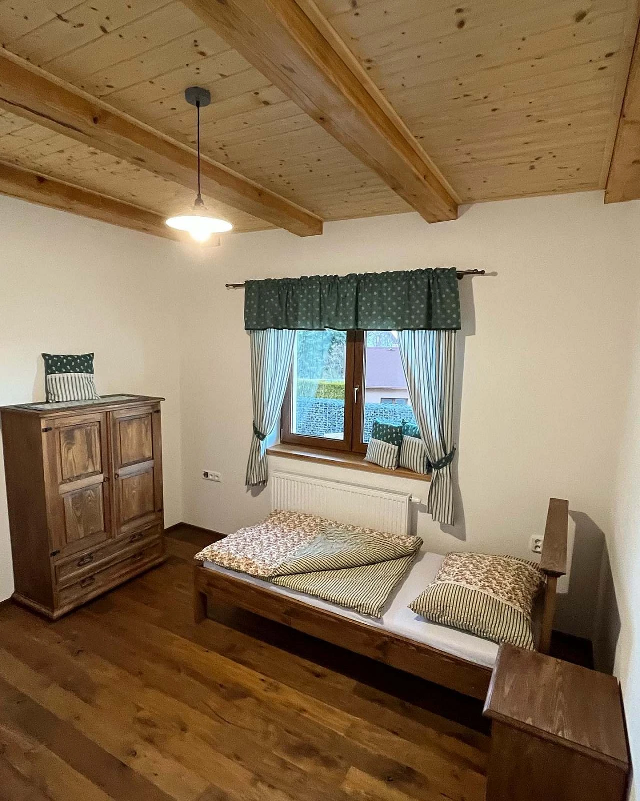 Dům poskytuje ubytování pro 4 - 6 osob. Dům má dvě ložnice - jedna s postelí a druhá se dvěma samostatnými lůžky. K dispozici je také rozkládací gauč v obývacím pokoji, takže dům může pohodlně ubytovat až 6 hostů. Sociální zařízení domu tvoří koupelnu s vanou a WC.
