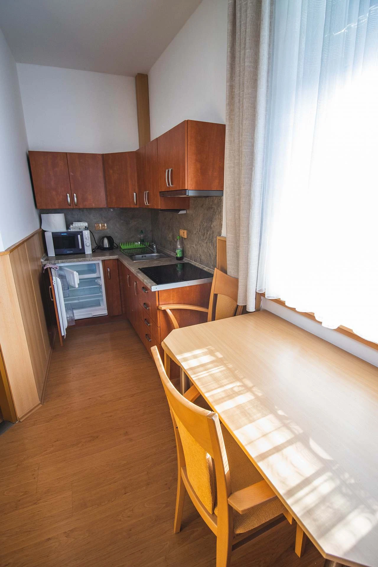 - plně vybavená kuchyně (varná deska, lednice, mikrovlnná trouba a rychlovarná konvice)