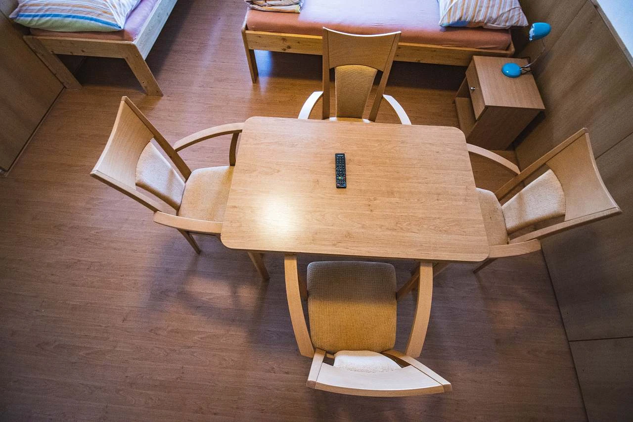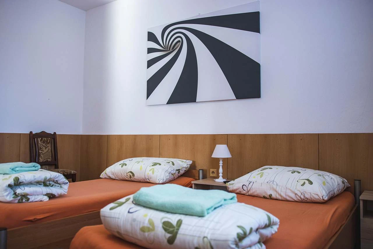 1. Apartmán Tři místnosti pro maximálně 6 osob. třílůžkový pokoj (manželská postel) třílůžkový pokoj televize na pokoji plně vybavená kuchyně (trouba se sporákem, lednice, mikrovlnná trouba a rychlovarná konvice) koupelna se sprchovým koutem samostatné WC balkón Wifi připojení k internetu 2. Apartmán Dvě místnosti pro maximálně 6 osob čtyřlůžkový pokoj dvoulůžkový pokoj televize na pokoji plně vybavená kuchyně (varná deska, lednice, mikrovlnná trouba a rychlovarná konvice) koupelna se sprchový koutem a WC Wifi připojení k internetu