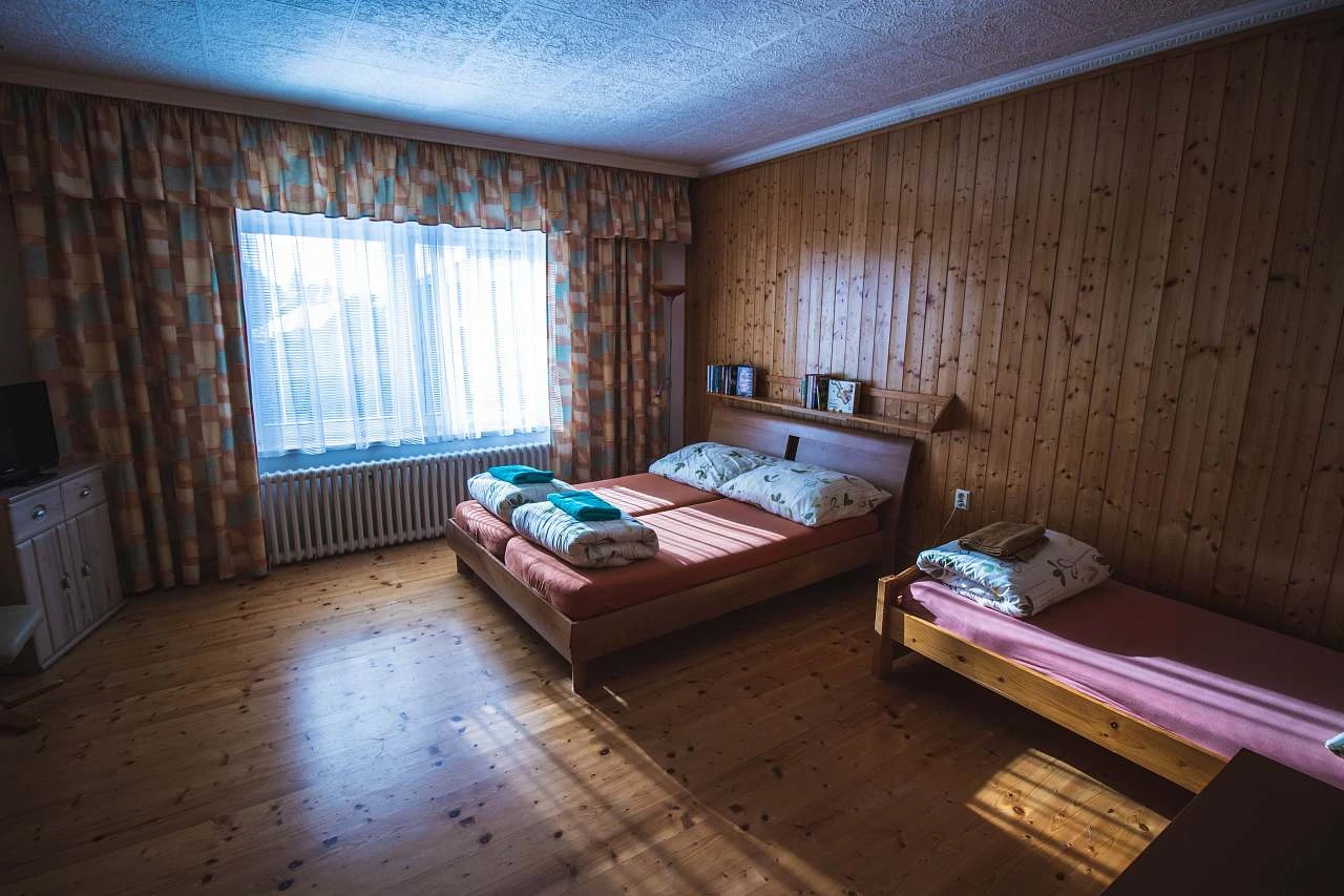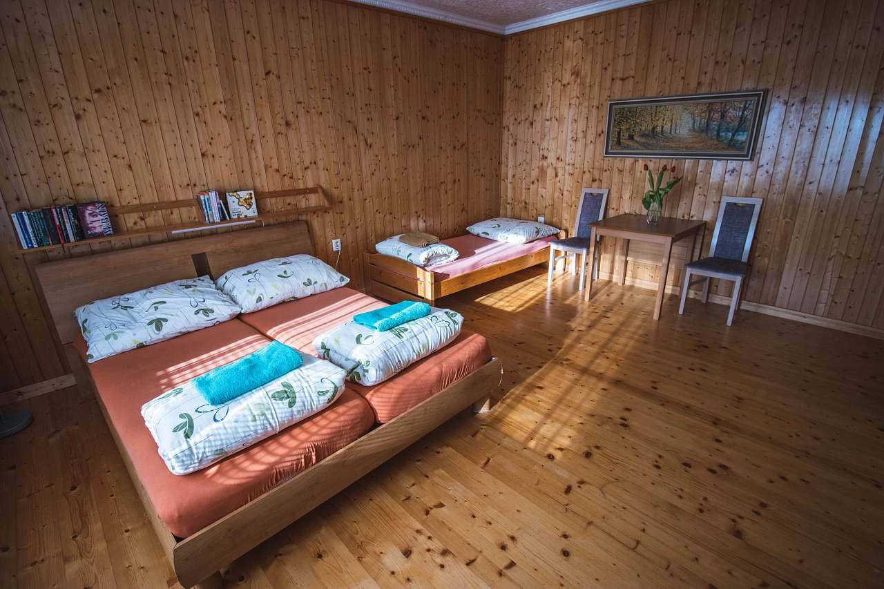 Tři místnosti pro maximálně 6 osob. třílůžkový pokoj (manželská postel) třílůžkový pokoj televize na pokoji plně vybavená kuchyně (trouba se sporákem, lednice, mikrovlnná trouba a rychlovarná konvice) koupelna se sprchovým koutem samostatné WC balkón Wifi připojení k internetu