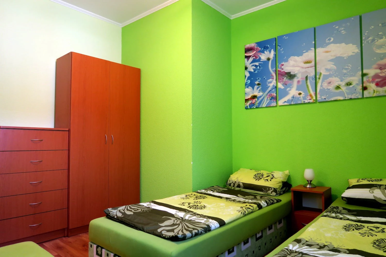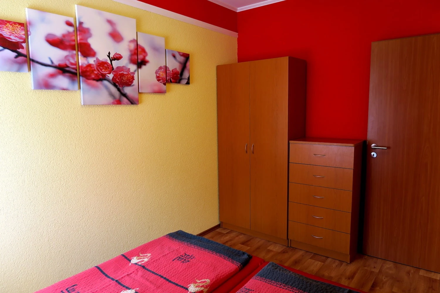 Ložnice jsou vybaveny úložnými prostory - skříň, šuplíková komoda. Lze zajistit i dětskou postýlku.