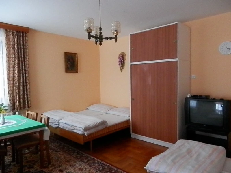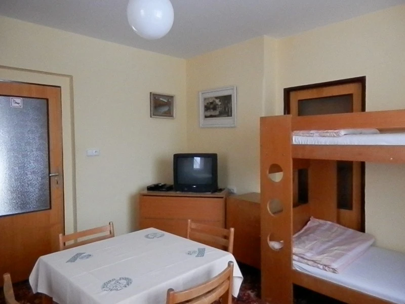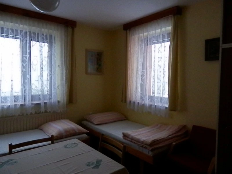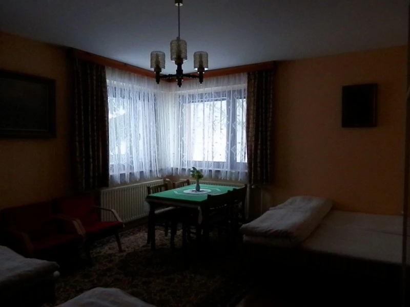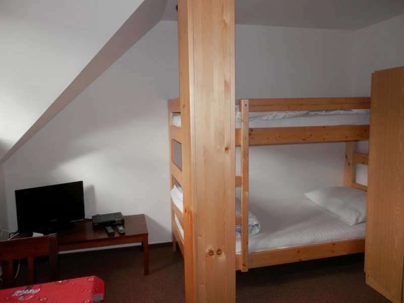 Nabízíme tři 4-lůžkové pokoje v prvním patře a tři 3-lůžkové pokoje v podkroví. Každý pokoj je vybaven postelemi, jídelním koutem, televizí a WiFi připojením. Hosté mají k dispozici společná sociální zařízení (1 koupelna s toaletou v 1. patře, 2 koupelny s toaletou v podkroví) a plně vybavenou kuchyň s lednicí, sporákem, troubou, mikrovlnkou, rychlovarnou konvicí a kávovarem.