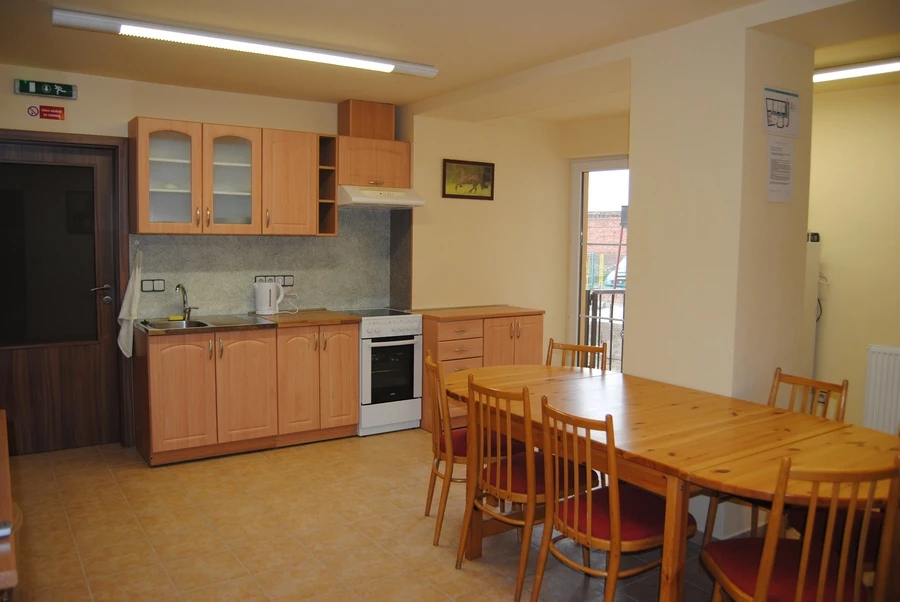 Každý pokoj je vybaven televizí, šatní skříní, stolem, židlemi a umyvadlem, přičemž sociální zařízení je řešeno čtyřmi společnými koupelnami se sprchovými kouty a toaletami. Pro přípravu jídel mají hosté k dispozici dvě plně vybavené kuchyně, které zahrnují elektrický sporák, troubu, mikrovlnnou troubu, rychlovarnou konvici, kombinovanou lednici a jídelní sezení.