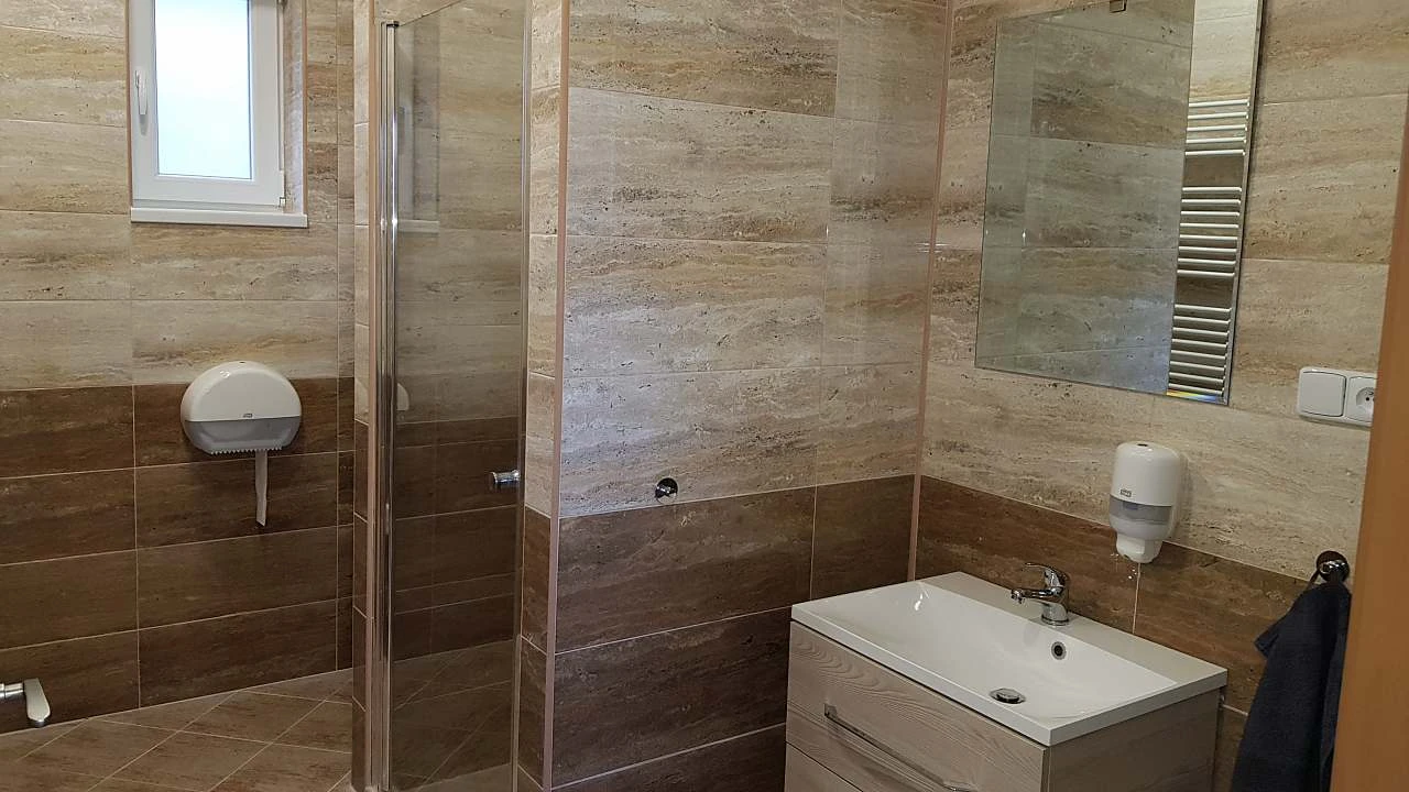 V hlavní budově je toaleta v přízemí a toaleta v 1.patře. Koupelna v přízemí má sprchový kout, rohovou vanu. Koupelna v patře má vanu. Pokoj v přízemí má vlastní koupelnu se sprchovým koutem a toaletou. Apartmán nad hospodou je vybaven toaletou a koupelnou se sprchovým koutem. Hospoda má vlastní sociální zařízení s toaletou a 2 pisoáry.