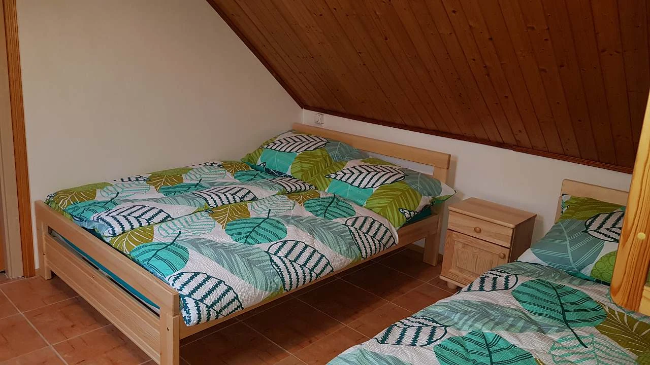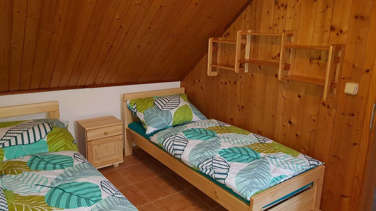 Chalupa k pronájmu poskytuje ubytování pro 8 až 20 osob v 6 ložnicích.