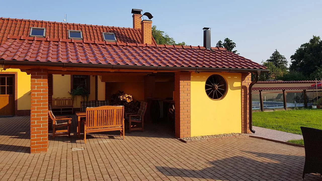 Chalupa má wi - fi připojení zdarma v celém areálu. Jsou zde 2 TV smart se satelitem. V hospodě je plně vybavená kuchyňka s barem - myčka, dvojdřez, lednice s mrazákem, indukční vařič, varná konvice, kávovar Dolce Gusto, mikrovlnná trouba, vinotéka, výčepní zařízení a kompletní vybavení na vaření, grilování a konzumaci nápojů. Venkovní přístřešek je vybaven venkovní krbem na grilování, a venkovní kuchyní (dvojdřez, myčka, malá lednice s mrazákem a přenosné výčepní zařízení). Zahradní nábytek včetně lehátek k bazénu je k dispozici. V relaxační části se nachází venkovní bazén 7,30x3,60,zahradní solární sprcha, lehátka, venkovní barové posezení a sauna domek s terasou. V domku je finská sauna pro 6 osob, odpočívárna a na terase ochlazovací sud a nafukovací vířivka s hydromasážními tryskami a slanou vodou. Vířivku lze ohřát až na 40°C a má osvětlení. Venkovní bazén je na solární ohřev. Objekt baby - friendly. Relaxační část s bazénem je oddělena plotem a uzavíratelnou brankou. U venkovního přístřešku je dětský koutek se skluzavkou. K dispozici je stůl na stolní tenis s vybavením.