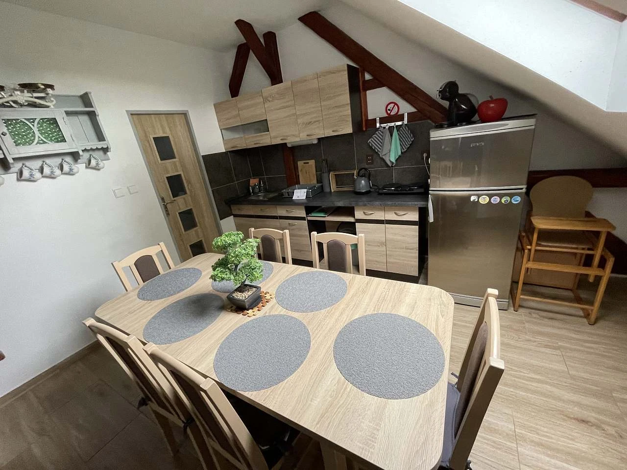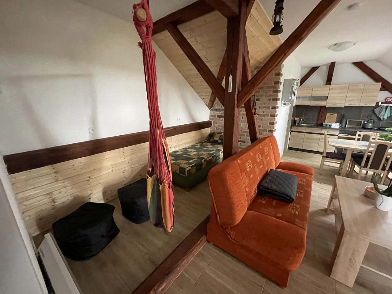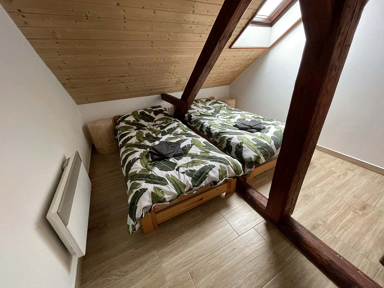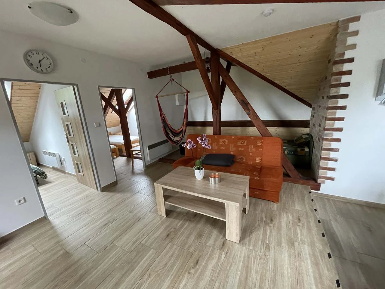 K dispozici je celý apartmán s kapacitou až 6 osob ve dvou ložnicích a obývací místnosti s přistýlkami. Každý pokoj je vybaven pohodlným lůžkem, skříní, v jedné z ložnic je možnost zapůjčení dětské postýlky. V obývací části nechybí rozkládací pohovka, TV, konferenční stolek ani kuchyňský kout s jídelním stolem a židličkou pro děti.