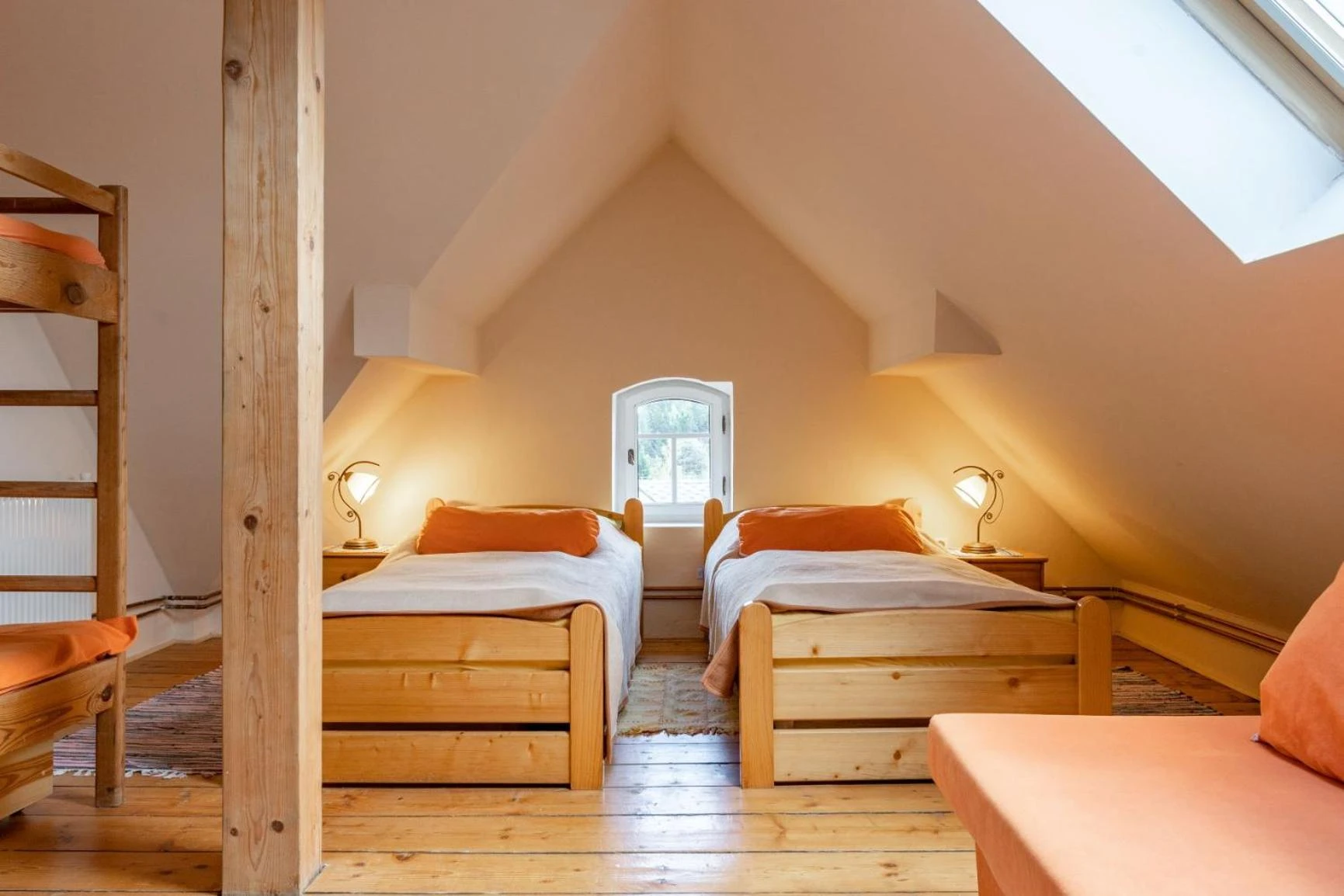 - Pokoje vybavené rozkládací pohovkou, sušákem na prádlo, věšákem na oblečení, dřevěnou nebo parketovou podlahou a topením