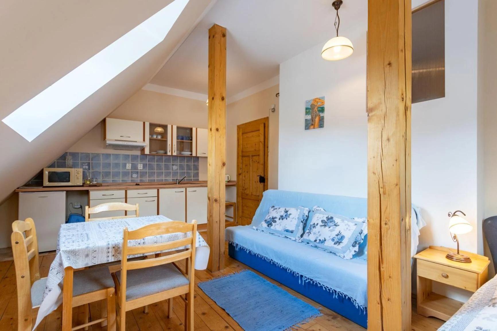 Apartmán Jaro má rozlohu 36 m² a nachází se v podkroví penzionu. Je určen pro ubytování tří hostů s možností až tří přistýlek.