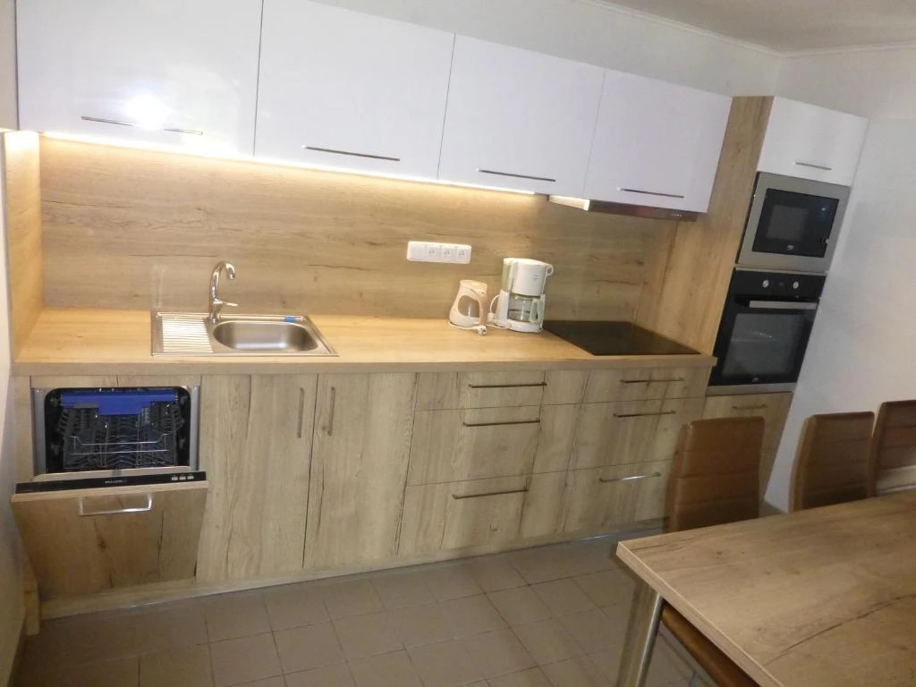 Vila disponuje třemi 2-lůžkovými ložnicemi, které jsou vybaveny dvěma samostatnými lůžky a nacházejí se v podkroví. Společná obývací místnost je vybavena televizí se satelitním příjmem, gaučem a má přímý vstup na terasu. Součástí obývacího prostoru je kuchyň s keramickou varnou deskou, mikrovlnnou troubou, rychlovarnou konvicí, lednicí s mrazákem a jídelním posezením. Hosté mohou využít sdílenou koupelnu se sprchovým koutem, toaletou a sušákem na prádlo. Další samostatná toaleta je k dispozici. Bezplatné WiFi připojení je samozřejmostí v celém objektu.