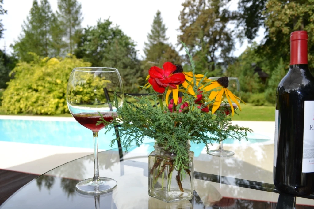 Služby a zázemí zahrnují individuální přístup k hostům, kdy je možné při příjezdu zajistit květinovou výzdobu, občerstvení na pokoj nebo láhev sektu. Hosté mohou využít útulný bar „Sklep“, kde si večer mohou vychutnat sklenku vína, dobrou kávu nebo značkový alkohol. K relaxaci v letních měsících slouží venkovní bazén se slanou vodou s lehátky a sprchou, zatímco celoročně je k dispozici vířivka, ideální pro romantické chvíle nebo odpočinek po sportovních aktivitách. Zahrada nabízí altán, venkovní posezení a prostor pro relaxaci v klidném prostředí.
