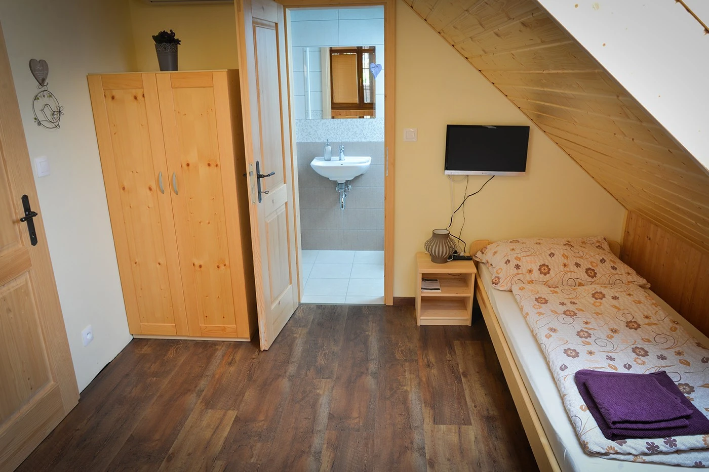 Náš vinný sklep poskytuje možnost ubytování ve zbrusu nových a pohodlných pokojích, které jsou hezky zařízené a vybavené pohodlnými matracemi na lamelových roštech, soukromou koupelnou (toaleta, sprchový kout, umyvadlo) a televizí. Pokoje mají také klimatizaci, kterou můžete využít během teplých letních měsíců.
