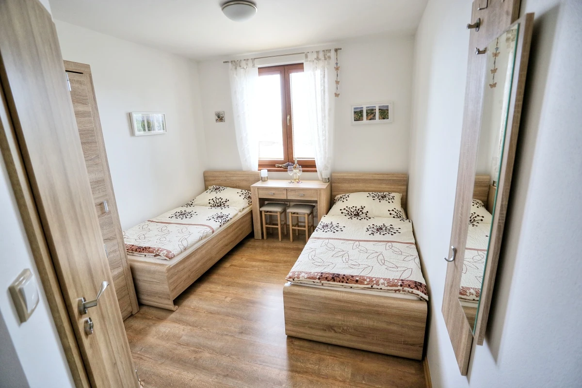 4 dvoulůžkové pokoje (2× manželská postel, 2× samostatná lůžka)