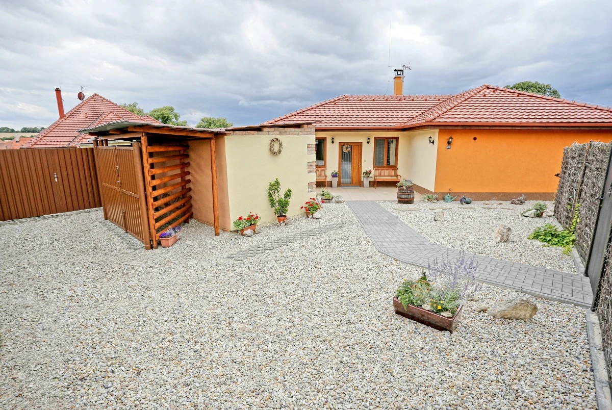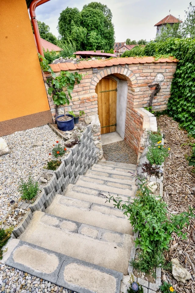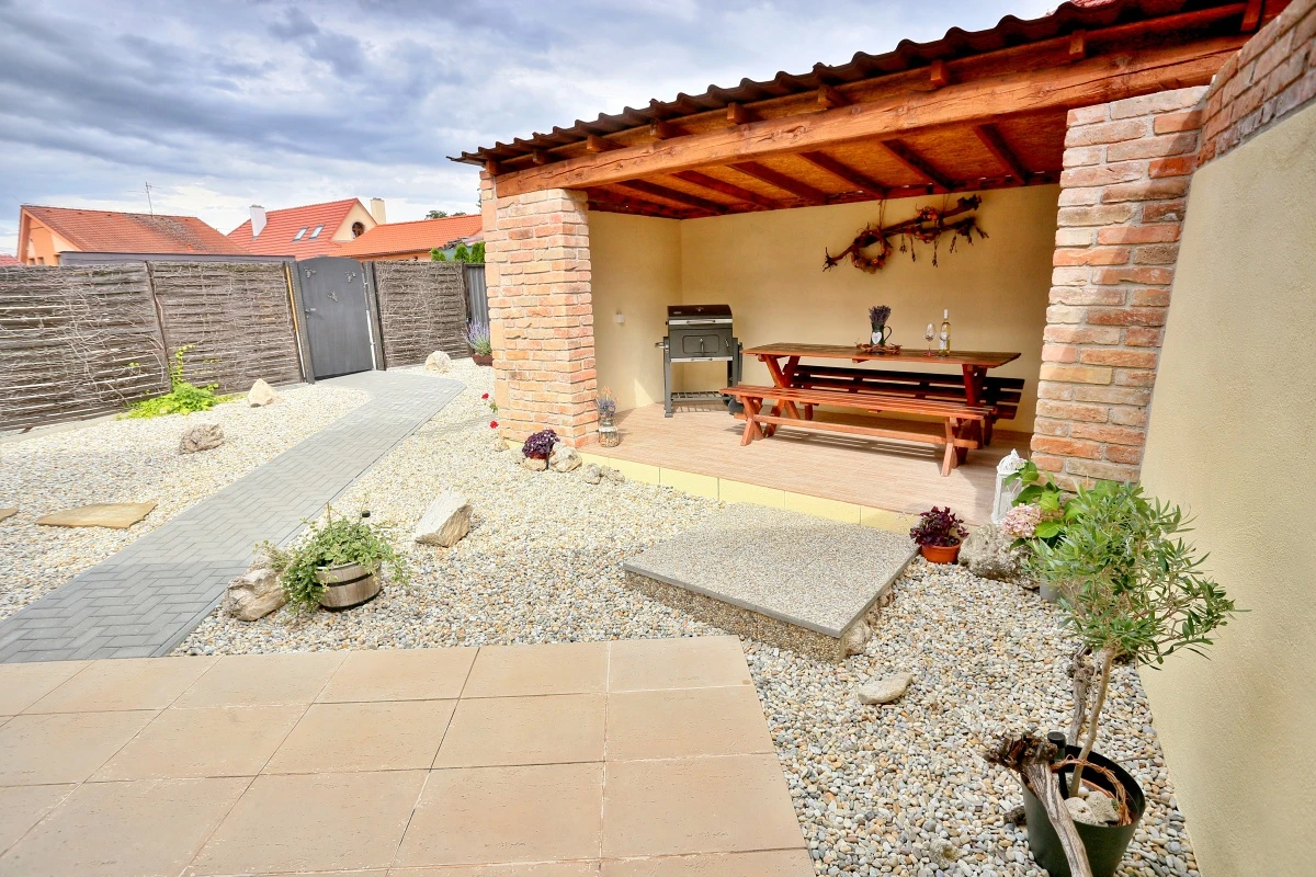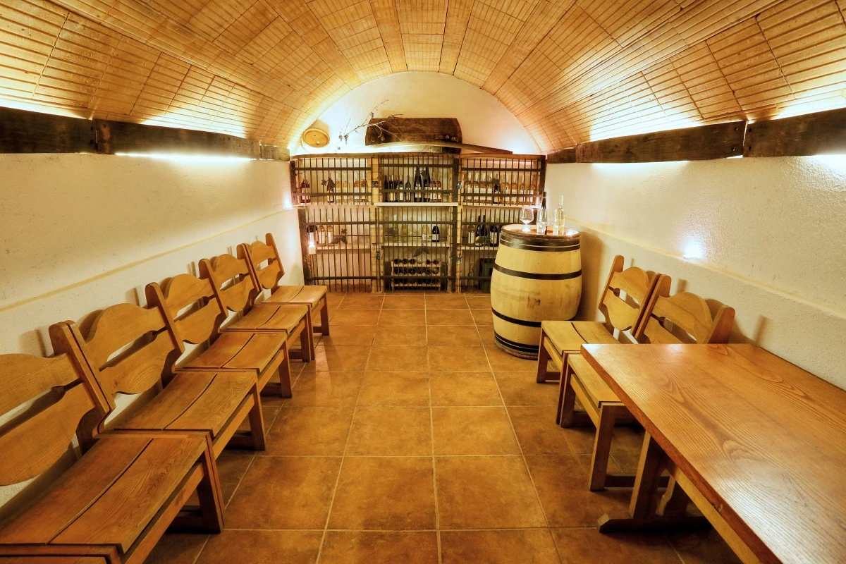 Domek nabízí čtyři dvoulůžkové pokoje, každý s vlastní koupelnou a toaletou. Dva pokoje jsou vybaveny manželskou postelí, další dva mají samostatná lůžka. Hosté mají k dispozici plně vybavenou kuchyň s myčkou nádobí, kávovarem a jídelním koutem. Součástí je také společenská místnost s krbovými kamny. V uzavřeném dvoře se nachází terasa s krytým posezením, zahradním grilem a degustačním sklípkem. Pro úschovu kol je k dispozici krytý uzamykatelný přístřešek. Wi-Fi připojení je zdarma.