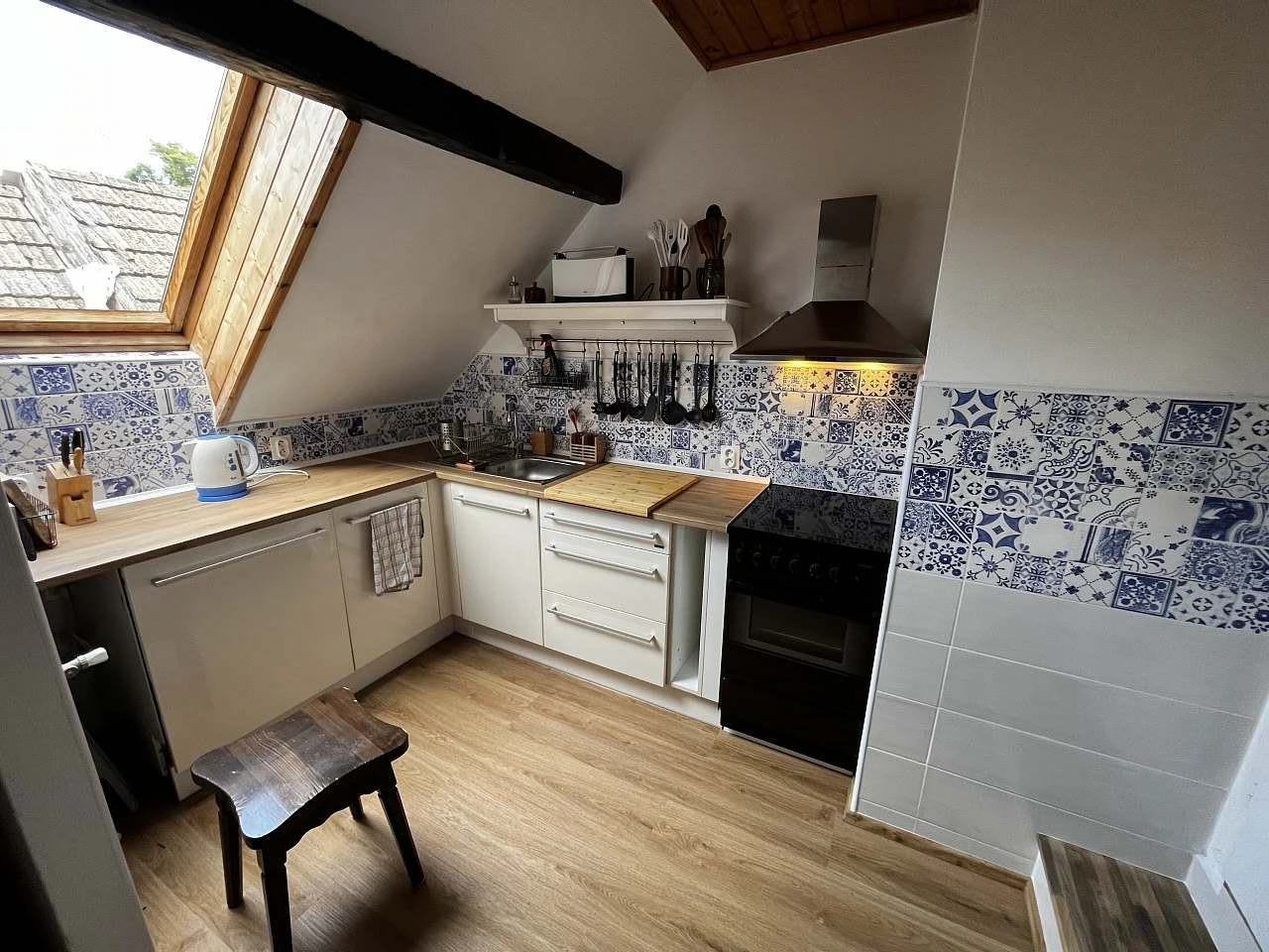 Máme pro vás připravenou samostatnou, moderně zrekonstruovanou kuchyň, kde naleznete vše potřebné pro vaření - elektrický sporák s troubou, mikrovlnku, lednici s mrazákem, myčku nádobí, rychlovarnou konvici a toustovač. K vašim službám je také dostatek nádobí a pro úklid je připravena houbička, saponát a utěrky.