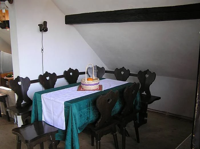 Prostor obývací místnost je jinak vhodná pro pohodlné posezení s rodinou a přáteli. Za stěnou se nachází jídelní kout, ze kterého se dá vyjít na balkon s výhledem do zahrady a na malebnou vesnici.