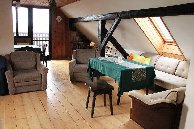 Pro větší skupiny nabízíme možnost ubytovat další dvě osoby na přistýlkách - na rozkládacích pohovkách v společném prostoru obývací místnosti. Přistýlky řešíme po domluvě a za cenu uvedenou v ceníku.
