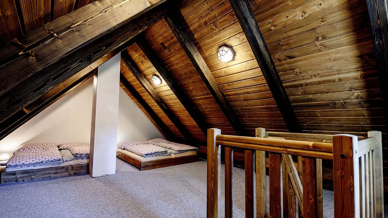 Podkroví: prostor vhodný pro děti, 4x postel (letiště)
